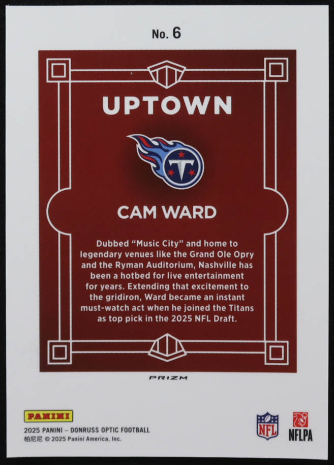 Cam Ward 2025 Donruss Optic Uptown #6 RC