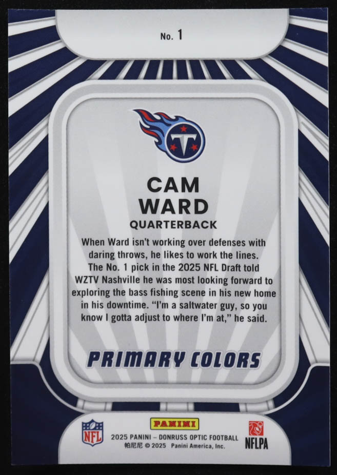 Cam Ward 2025 Donruss Optic Rookie Primary Colors #1 RC