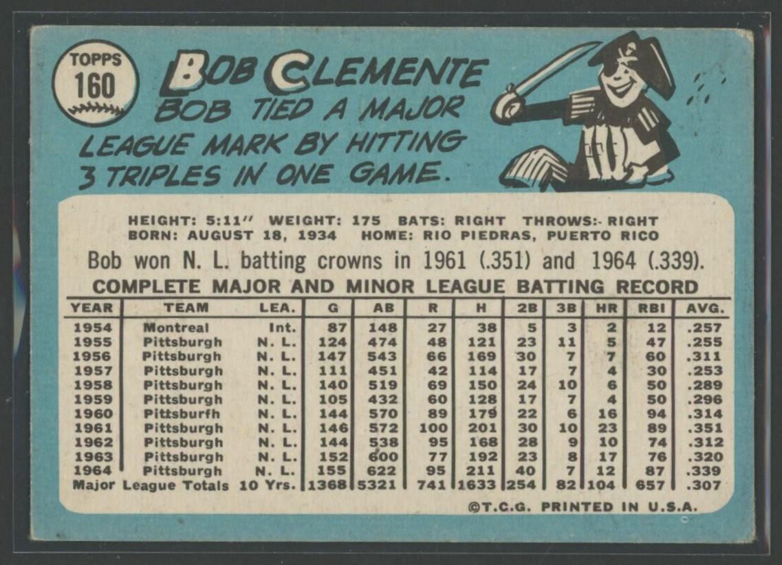 Roberto Clemente 1965 Topps #160