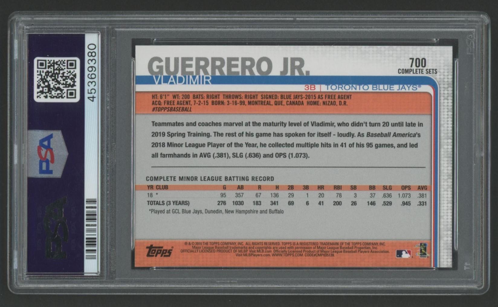 Vladimir Guerrero Jr. 2019 Topps Complete Set Fielding #700 RC (PSA 10)