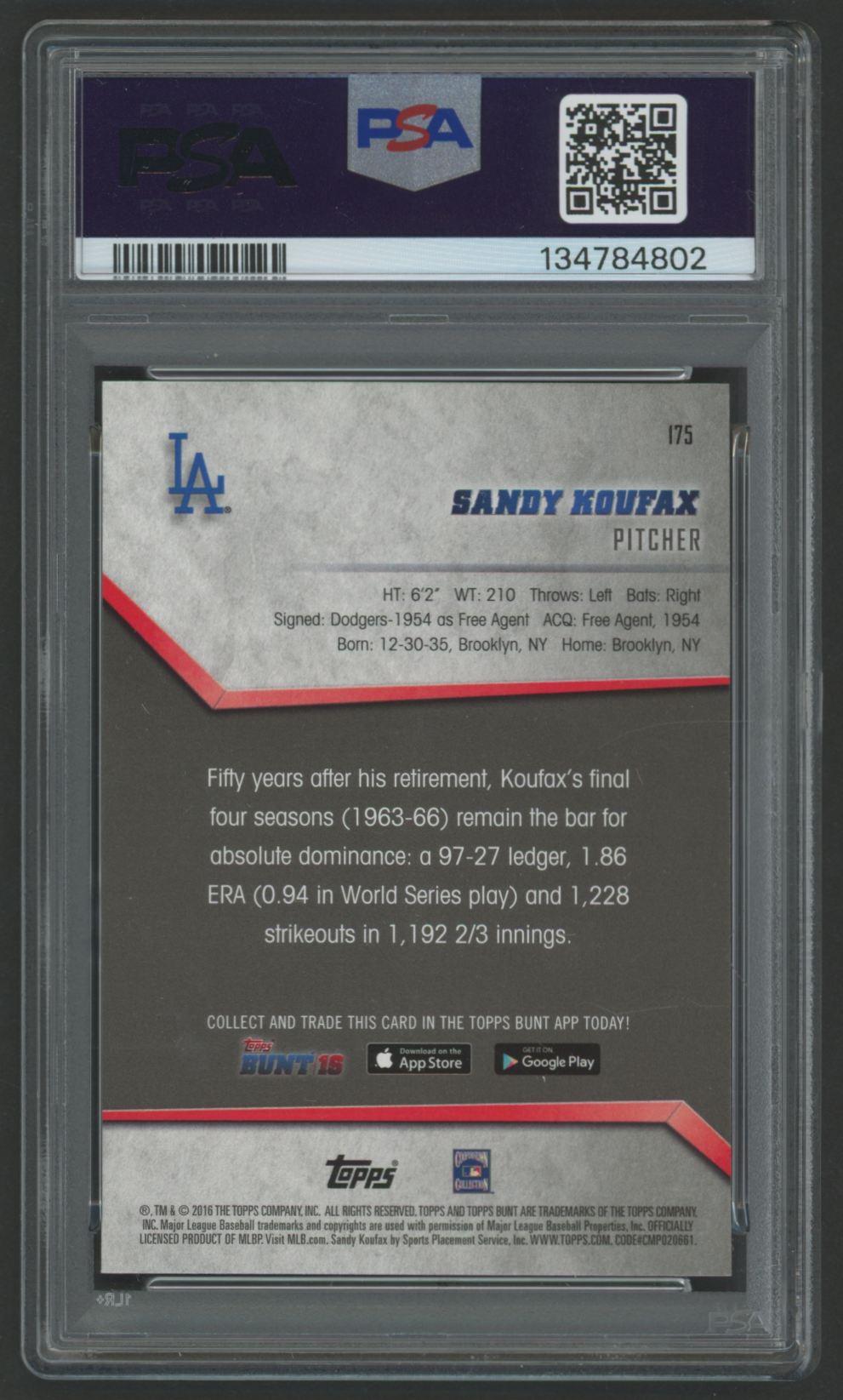 Sandy Koufax 2016 Topps Bunt #175 (PSA 10)
