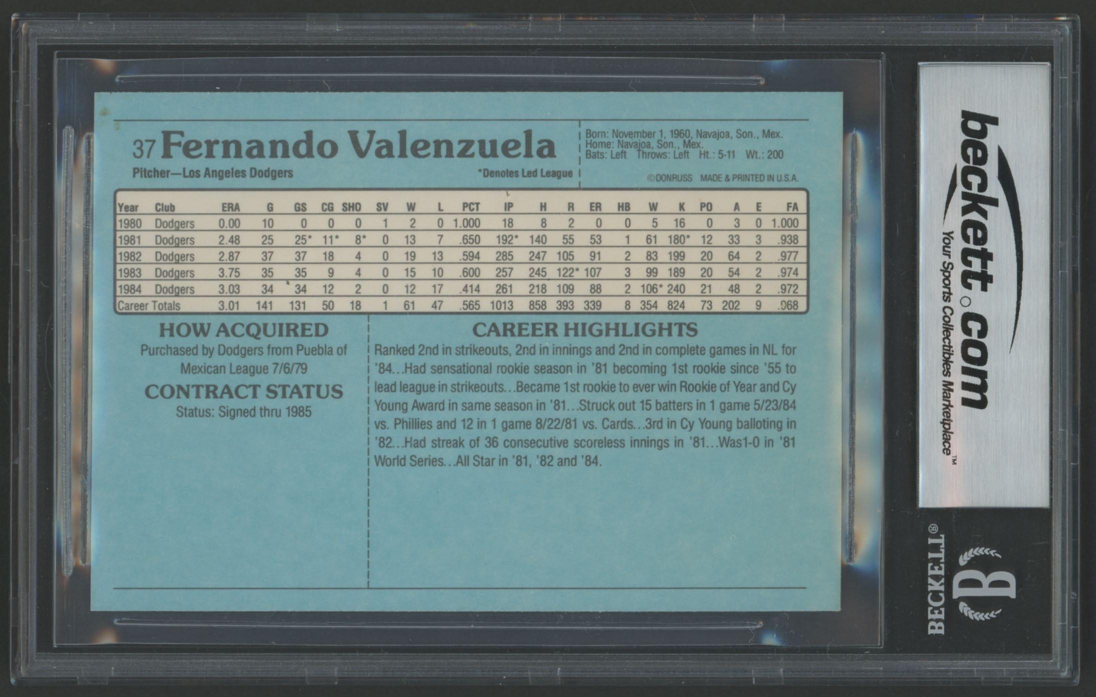 Fernando Valenzuela Signed 1985 Donruss Action All-Stars #37 (BGS)