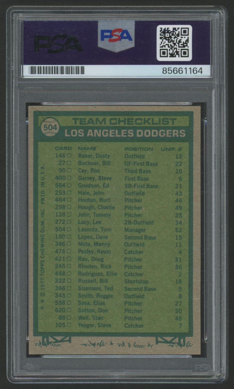 Tommy Lasorda Signed 1977 Topps Dodgers CL #504 (PSA)
