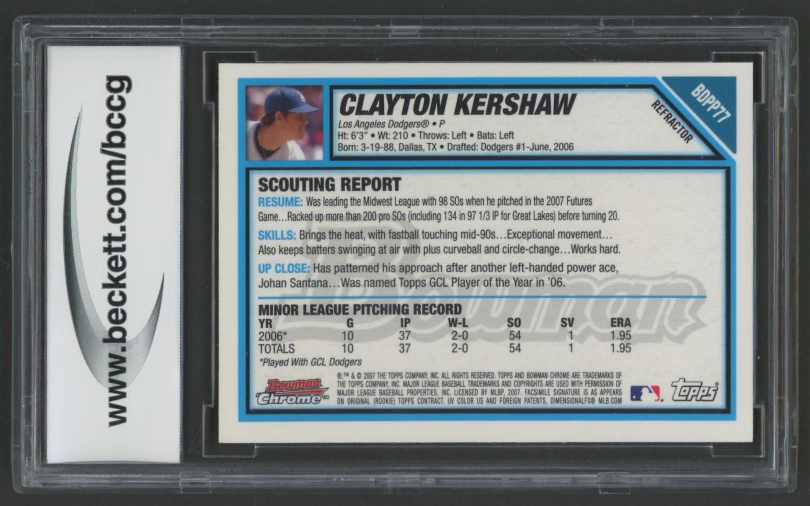 Clayton Kershaw 2007 Bowman Chrome Draft Future's Game Refractors #BDPP77 (BCCG 9)