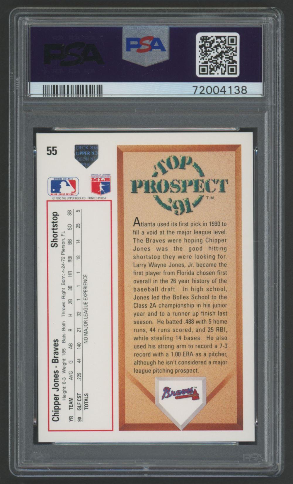 Chipper Jones Signed 1991 Upper Deck #55 RC (PSA 9 | Autograph Graded 10)