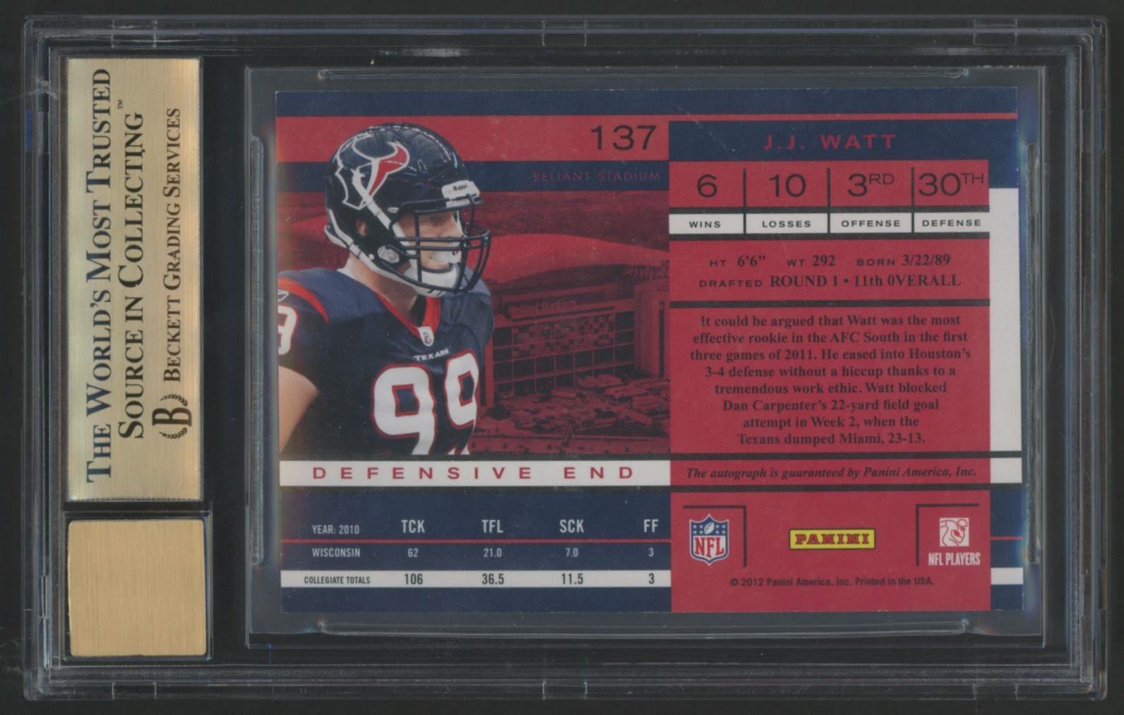 J.J. Watt 2011 Playoff Contenders Autographs #137 RC (BGS 9.5 | Autograph Graded 9)