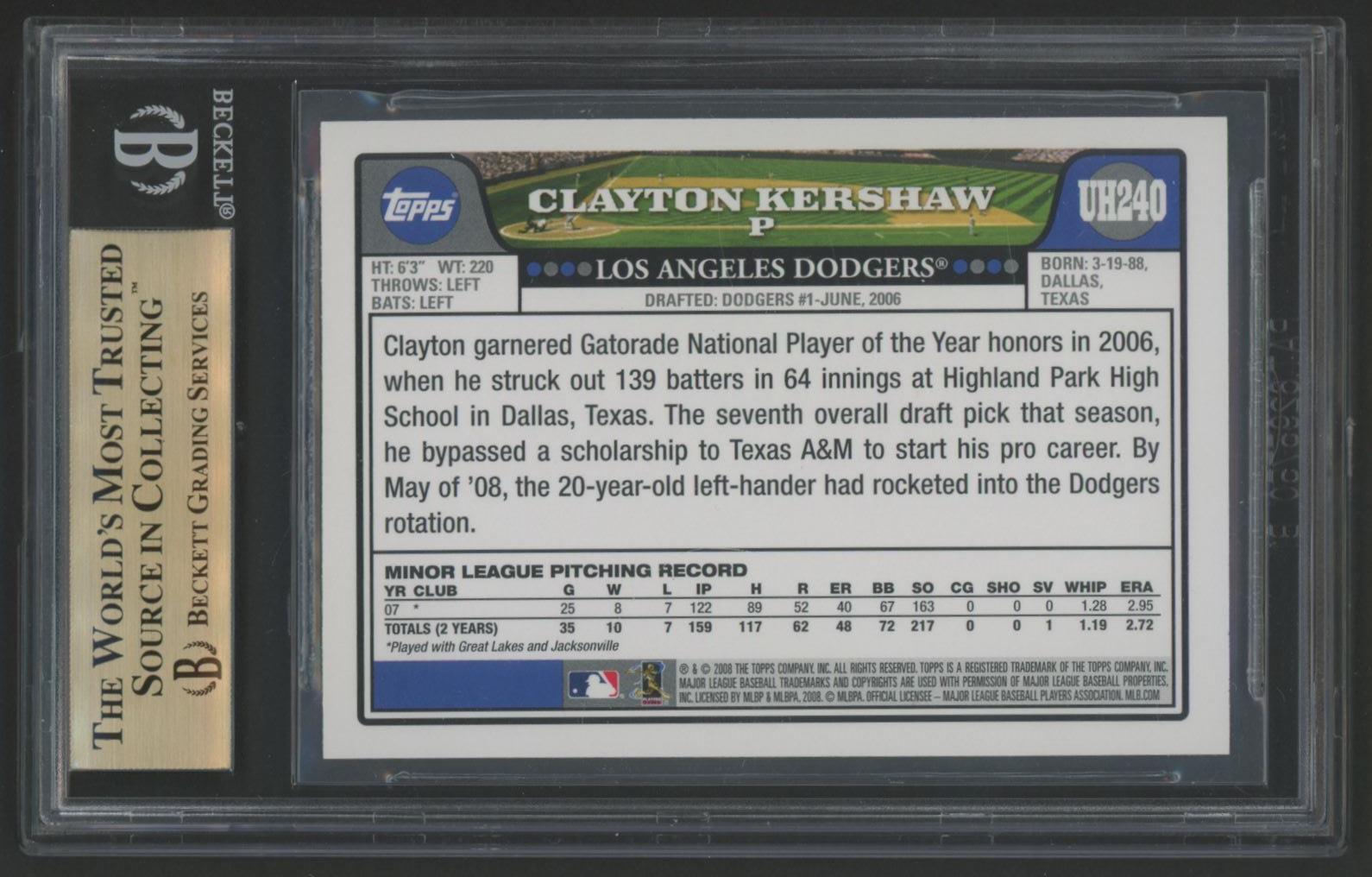 Clayton Kershaw 2008 Topps Update #UH240 RC (BGS 9.5)