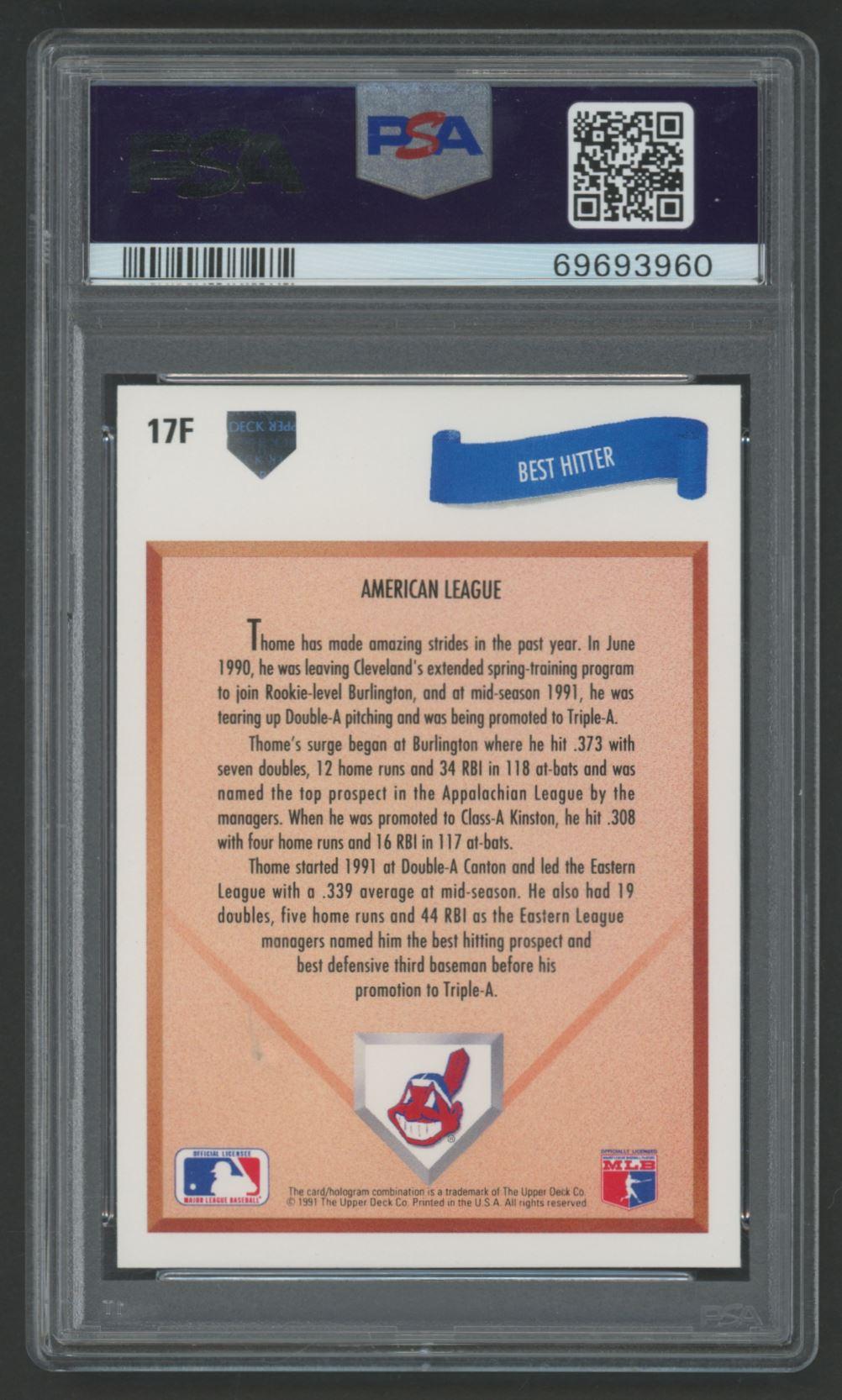 Jim Thome Signed 1991 Upper Deck Final Edition #17F RC (PSA 9 | Autograph Graded 10)