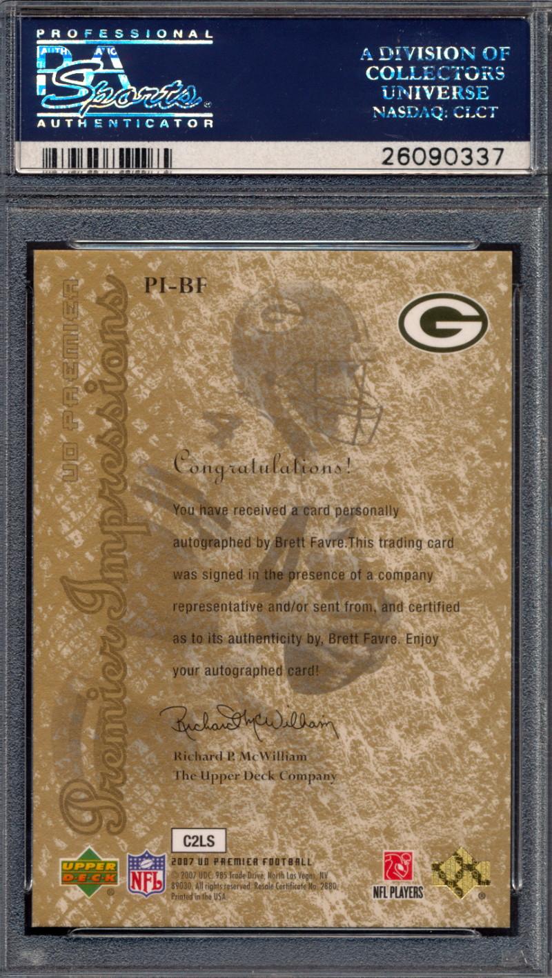 Brett Favre 2007 Upper Deck Premier Impressions Autographs Gold #PIBF #6/25 (PSA 9)