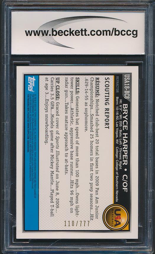 Bryce Harper 2010 Bowman Chrome 18U USA Baseball Refractors #18BC8 110/777 RC (BCCG 10)