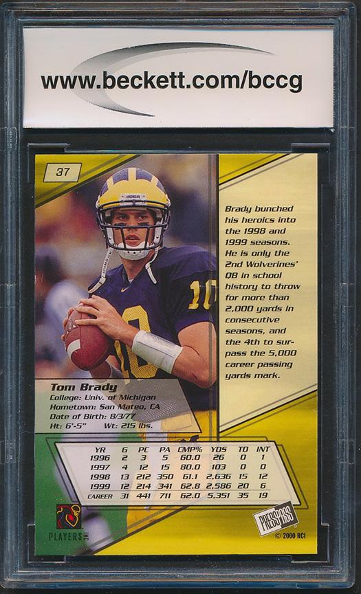 Tom Brady 2000 Press Pass Gold Zone #37 (BCCG 10)