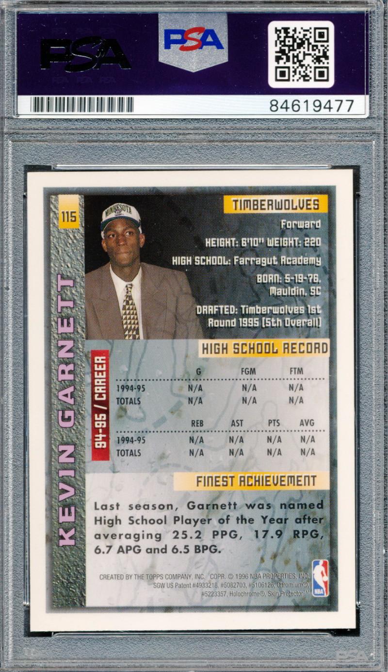 Kevin Garnett Signed 1995-96 Finest #115 RC (PSA | Autograph Graded 10)