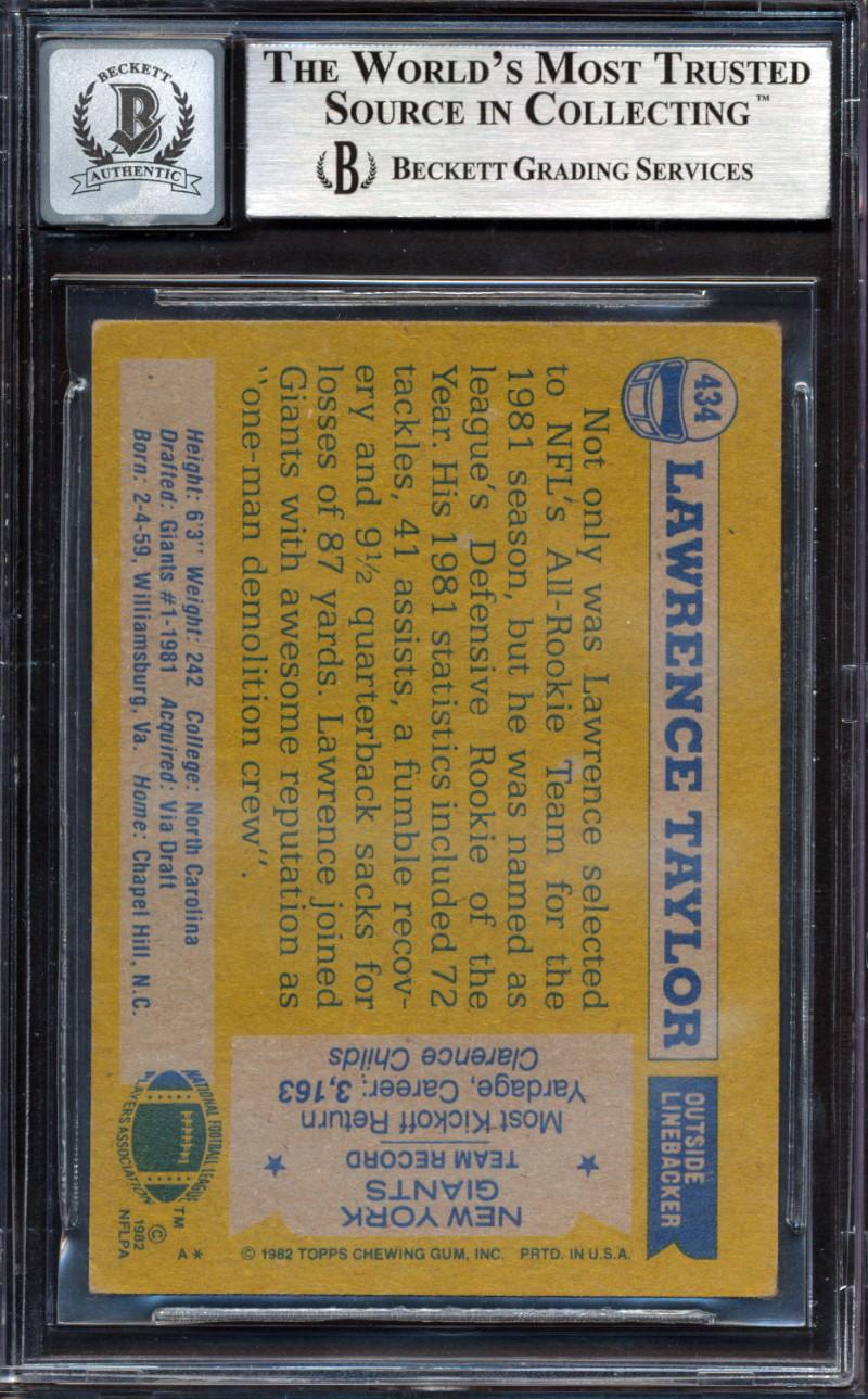 Lawrence Taylor Signed 1982 Topps #434 RC Inscribed "D GOAT" (BGS | Autograph Graded 10)