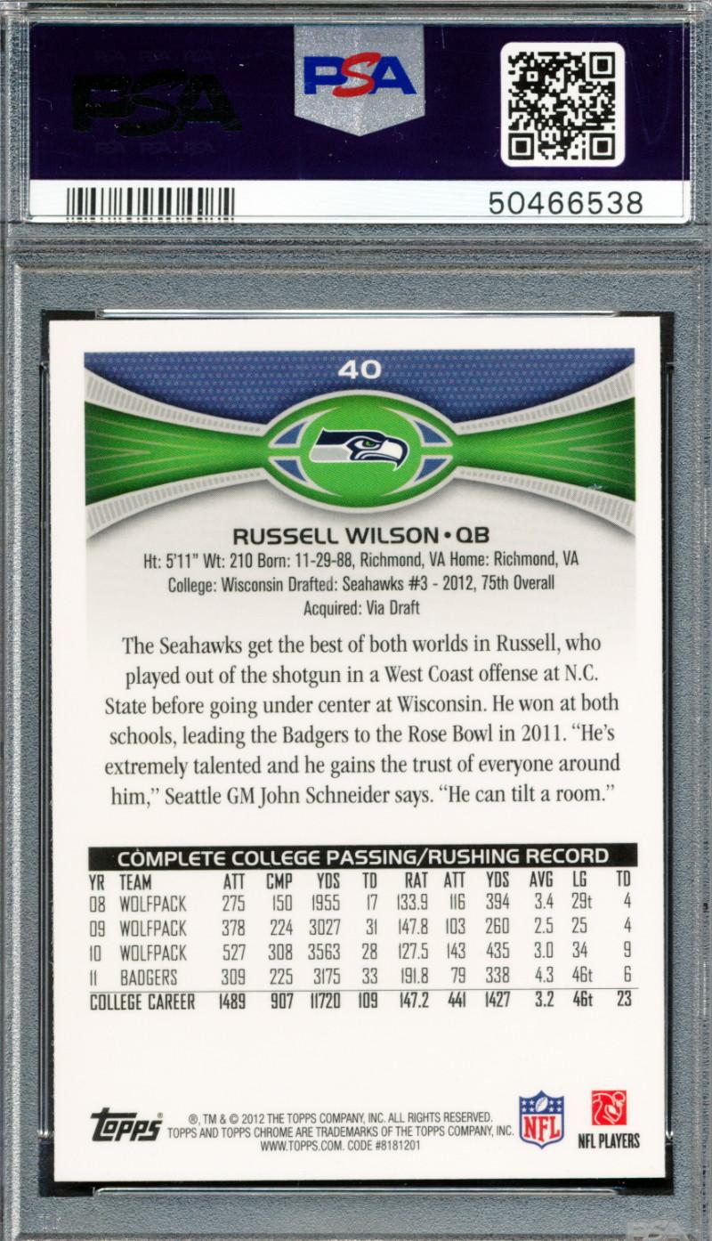 Russell Wilson Signed 2012 Topps Chrome Rookie Autographs #40 (PSA 8 | Autograph Graded 10)