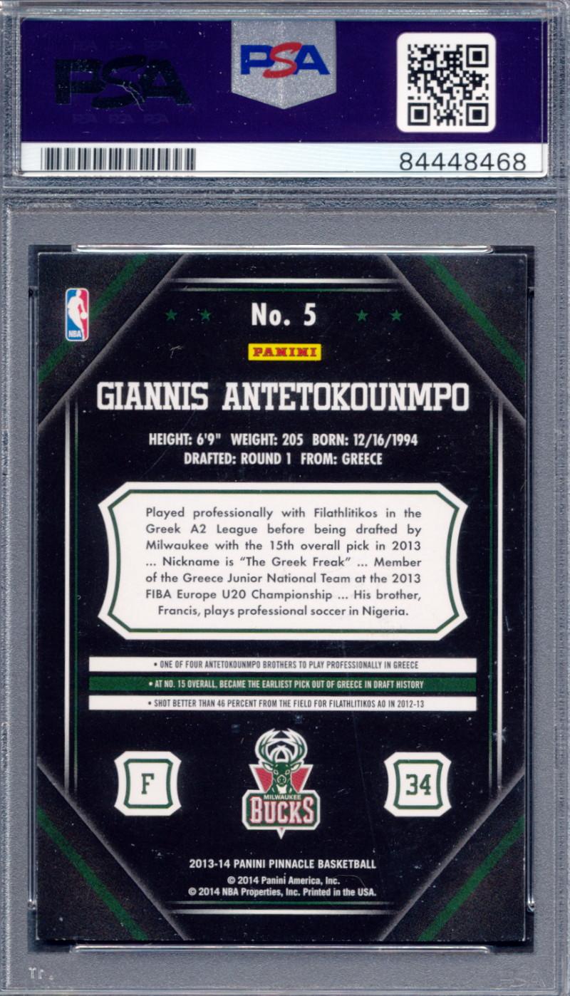 Giannis Antetokounmpo Signed 2013-14 Pinnacle #5 RC (PSA)