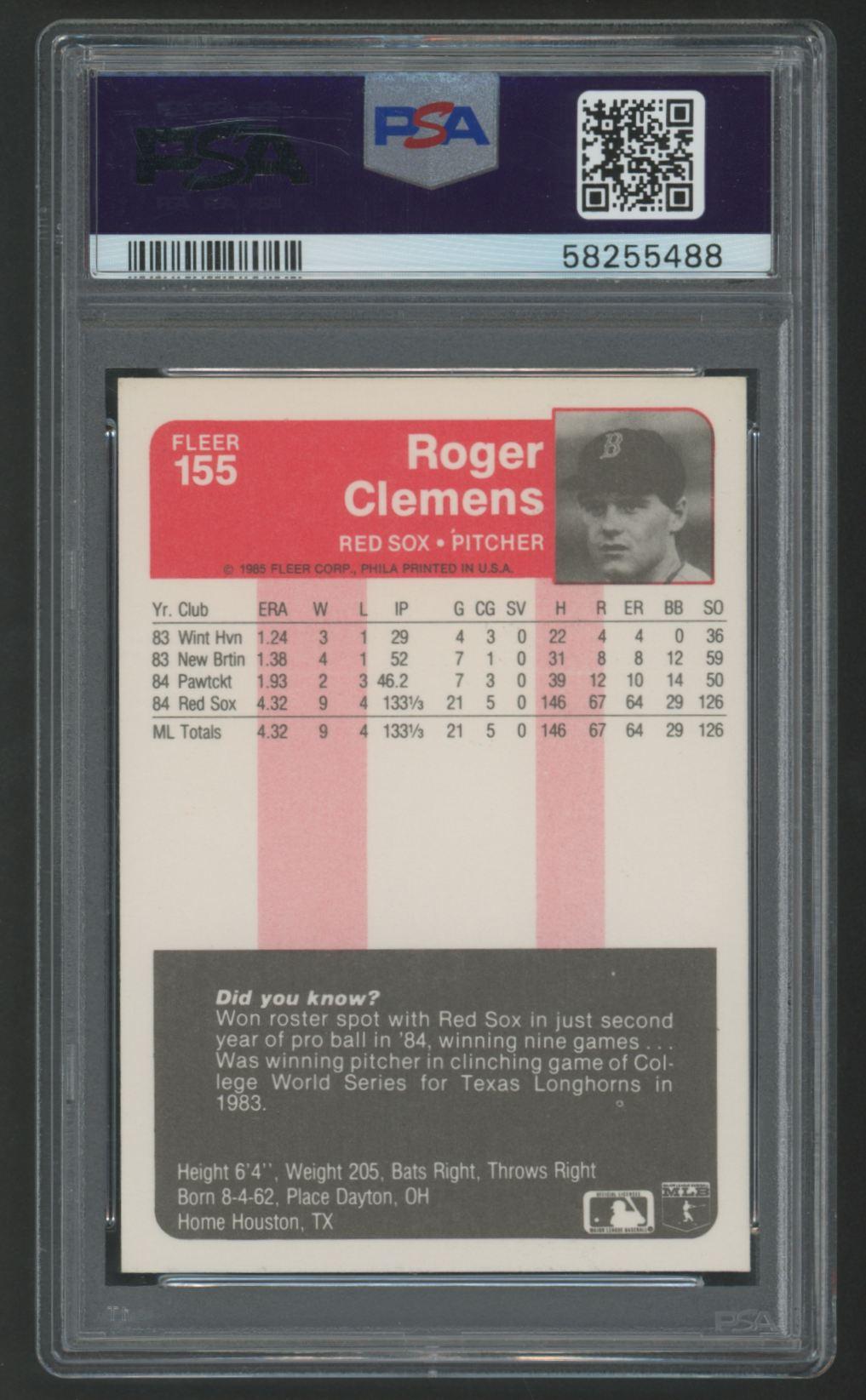 Roger Clemens 1985 Fleer #155 RC (PSA 9)