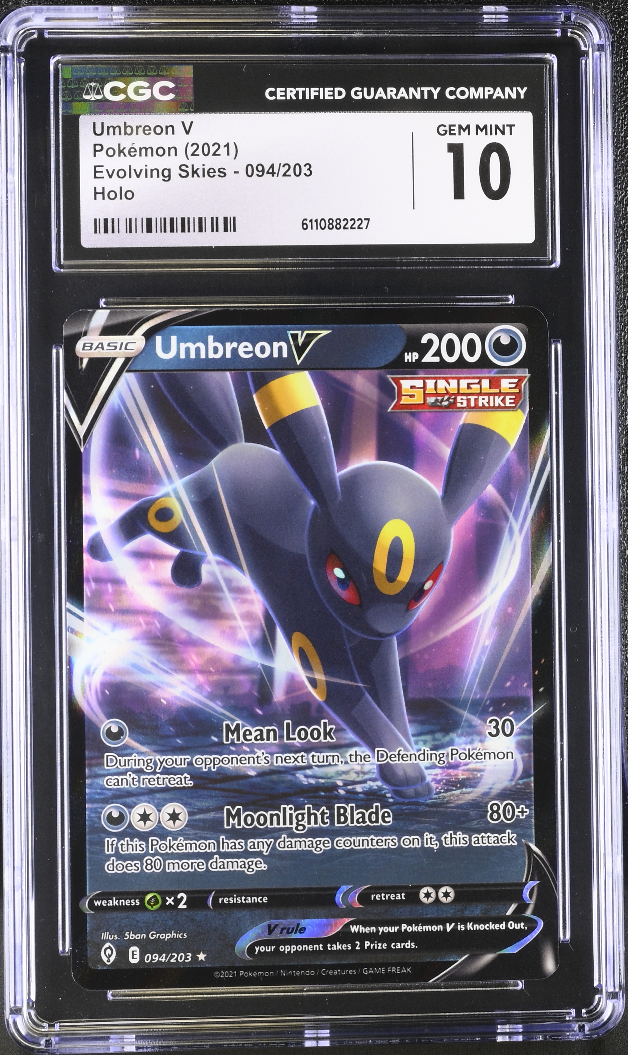 Umbreon V 2021 Pokemon TCG Sword & Shield Evolving Skies Holo #094 (CGC 10)