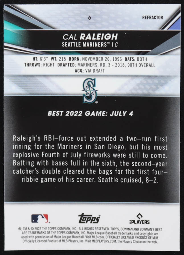 Cal Raleigh 2022 Bowman's Best Refractors #6 RC