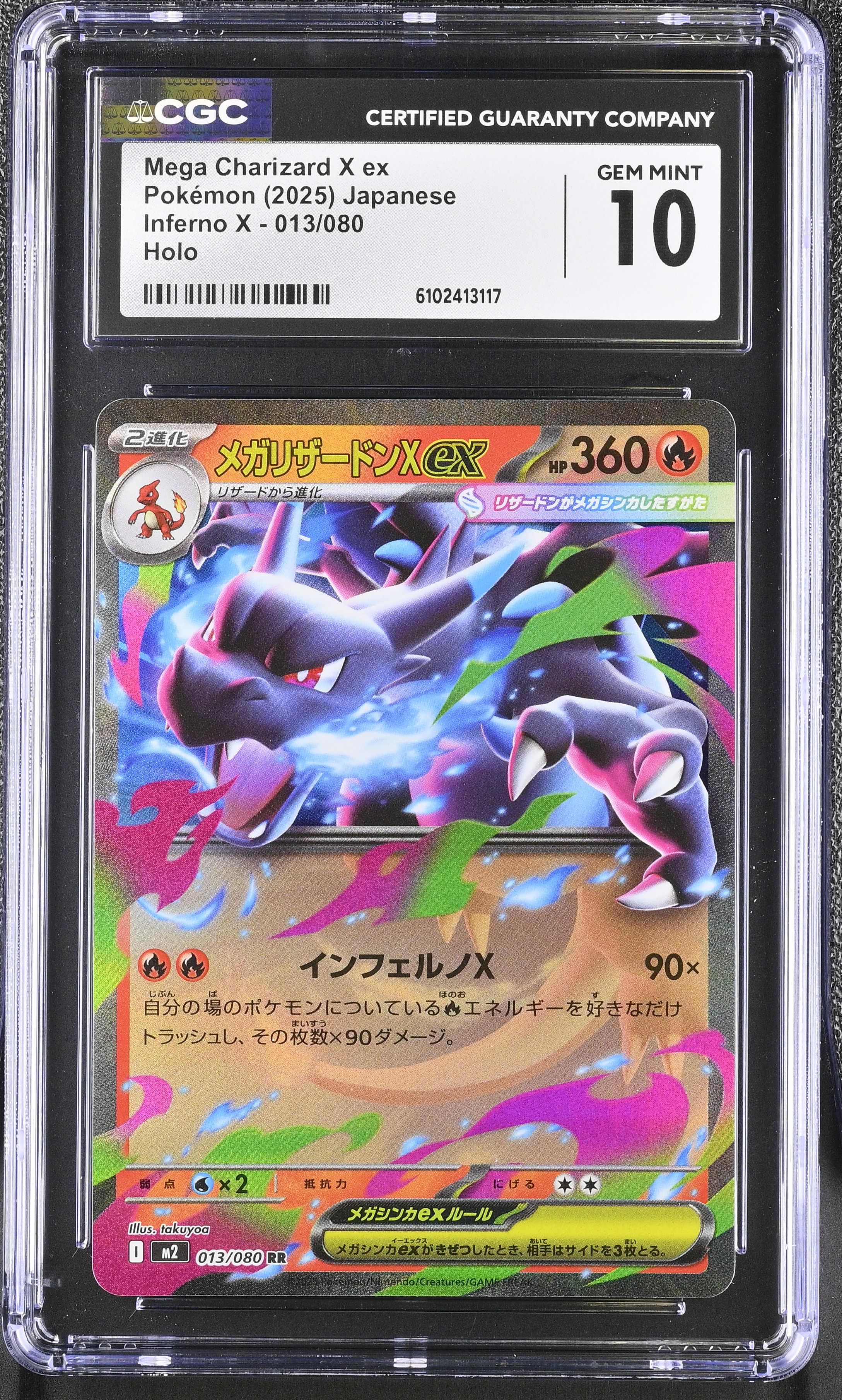 Mega Charizard X Ex 2025 Pokemon Card Game MEGA Inferno X Japanese Holo #013 (CGC 10)