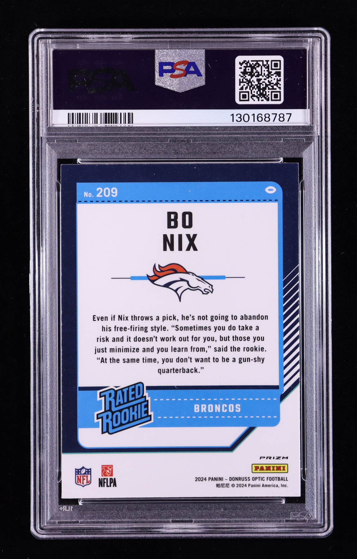 Bo Nix 2024 Donruss Optic Blue Hyper #209 RR RC (PSA 10)