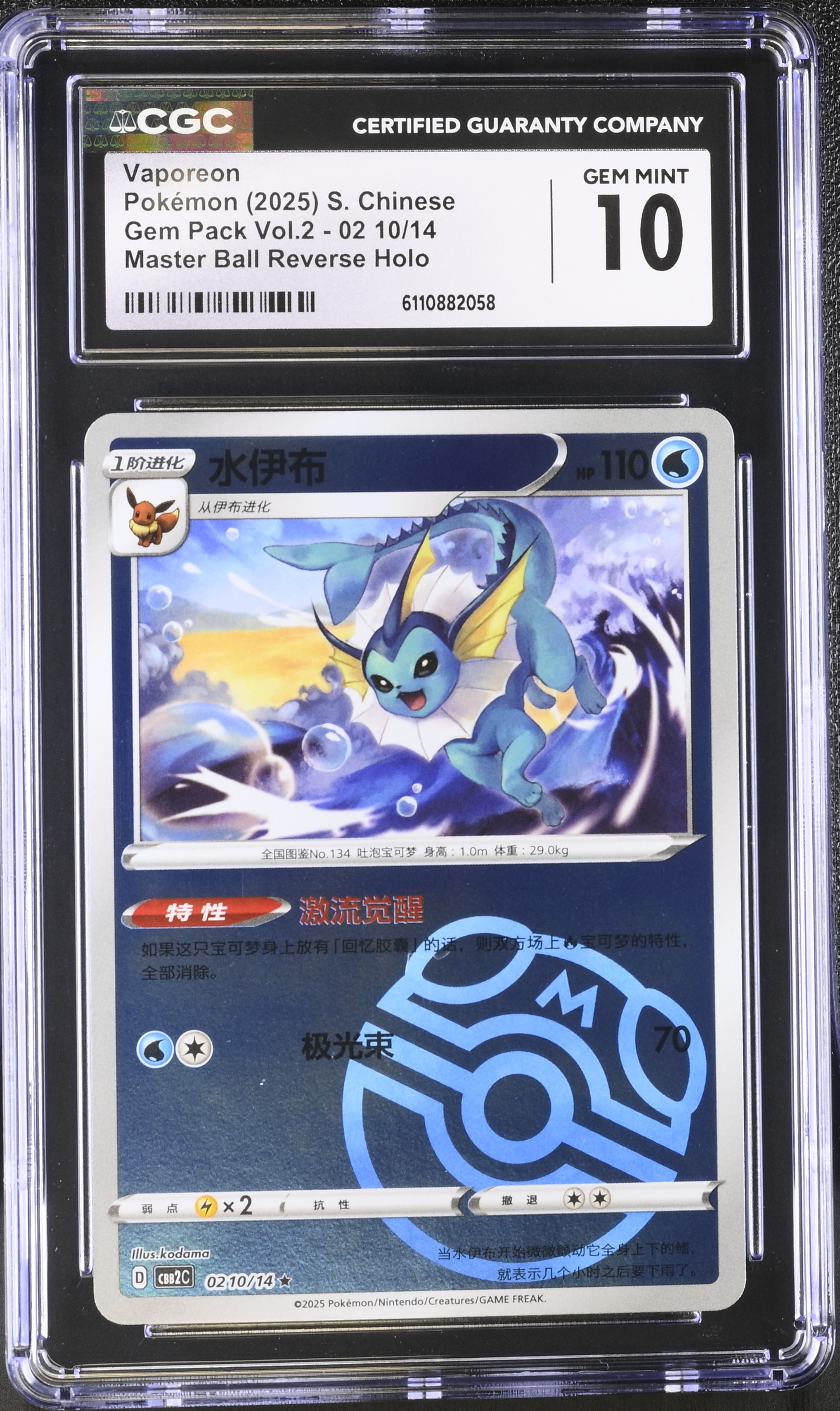 Vaporeon 2025 Pokemon TCG Scarlet & Violet Gem Pack Vol.2 Simplified Chinese Master Ball Reverse Holo #0210 (CGC 10)