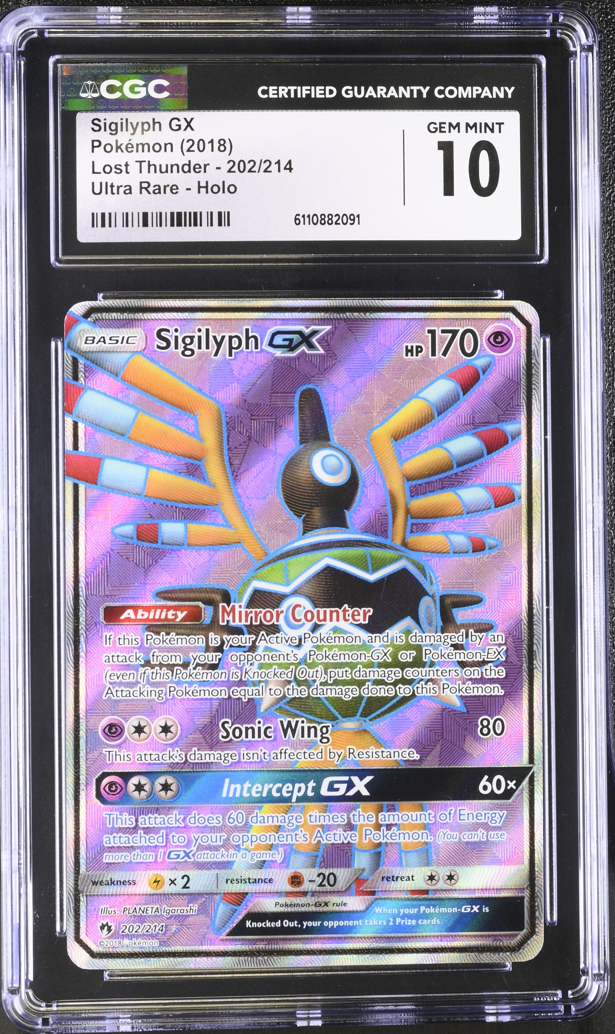 Sigilyph GX 2018 Pokemon Sun and Moon Lost Thunder Holo #202 (CGC 10)