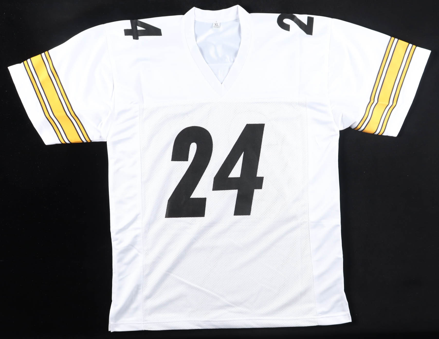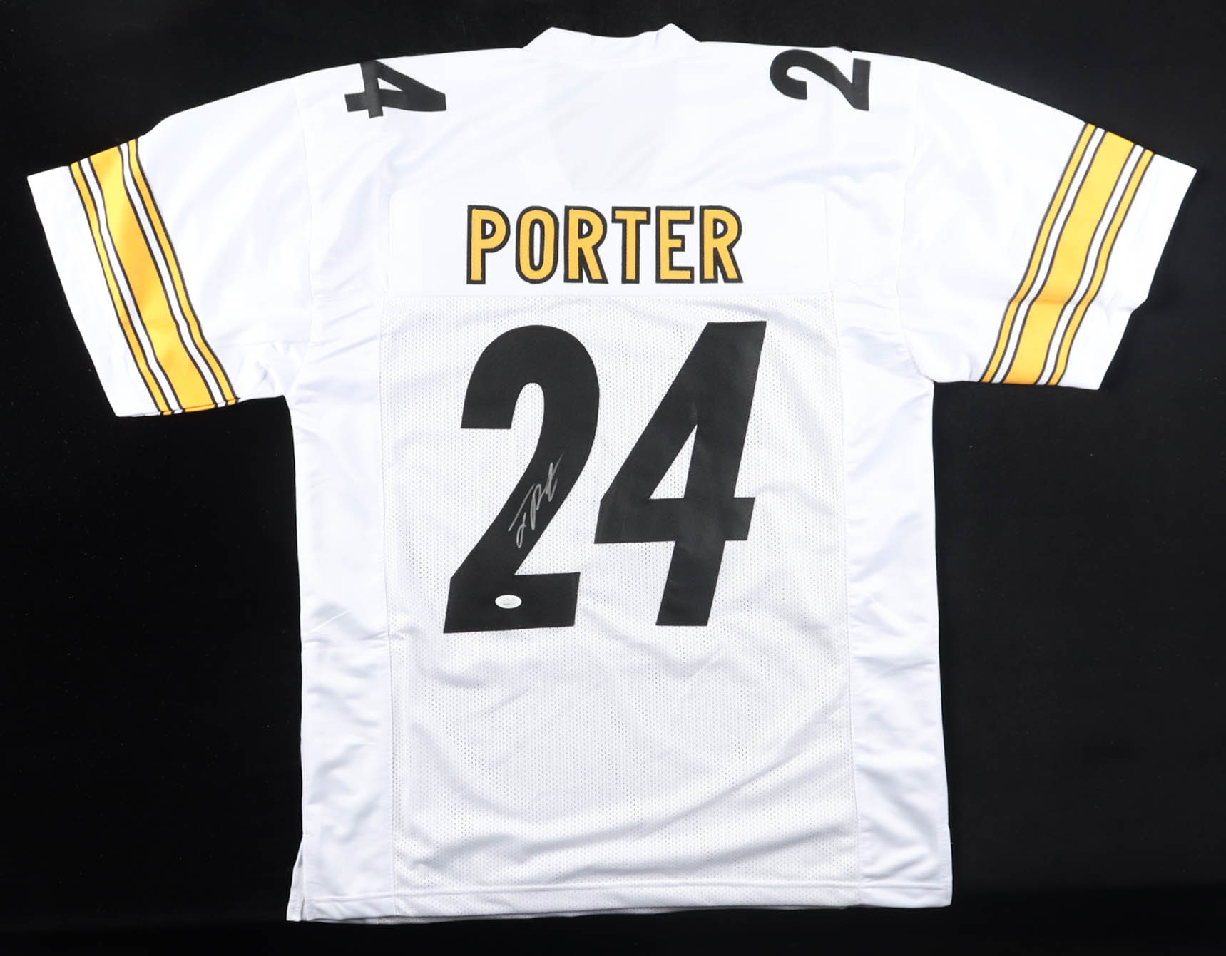 Custom jersey with everything sewn on, size XL. Hand-signed by Joey Porter Jr.