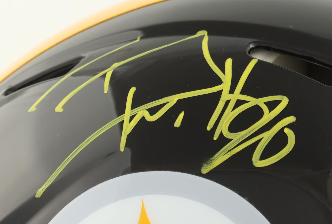 Riddell Pittsburgh Steelers full-size authentic on-field Speed helmet has been hand-signed by TJ Watt.