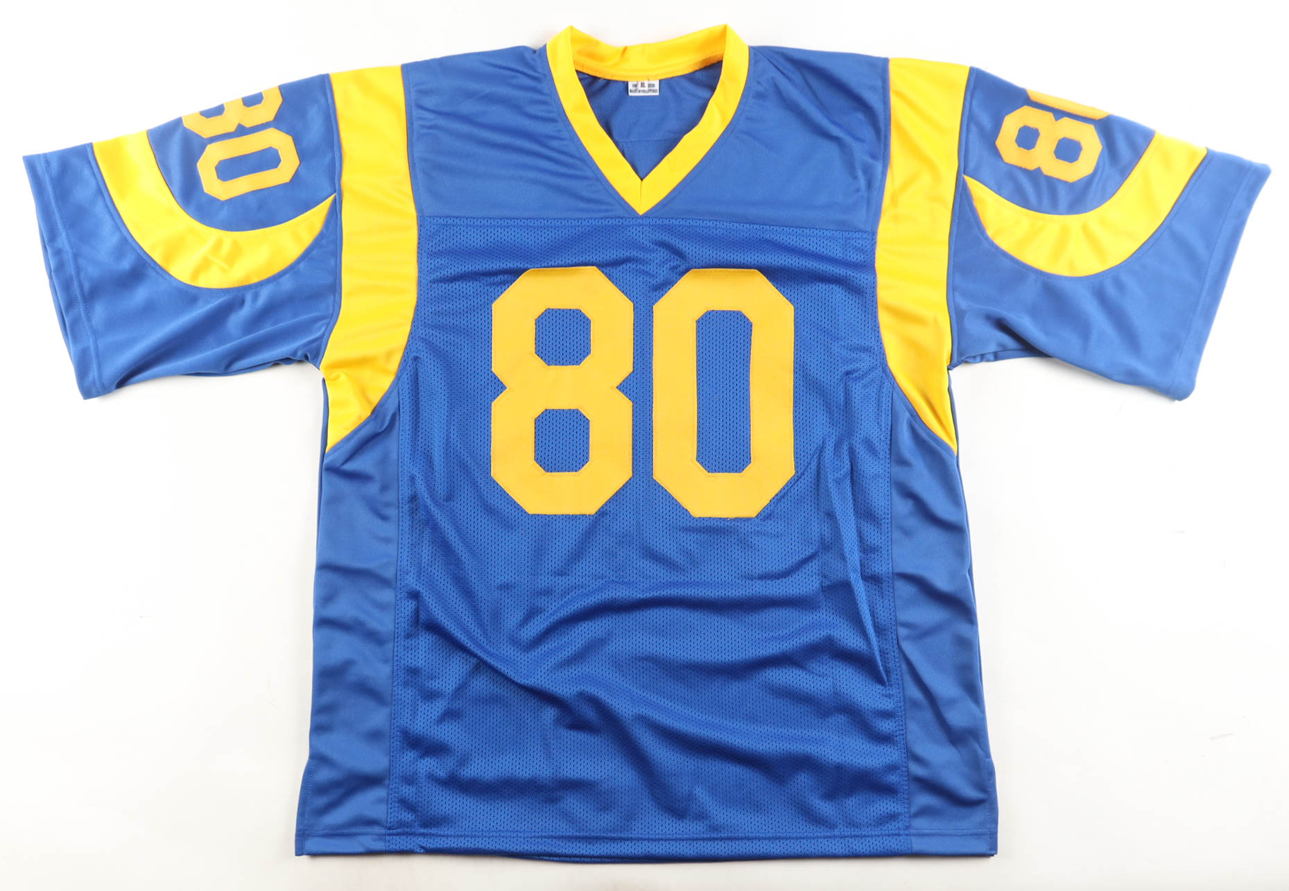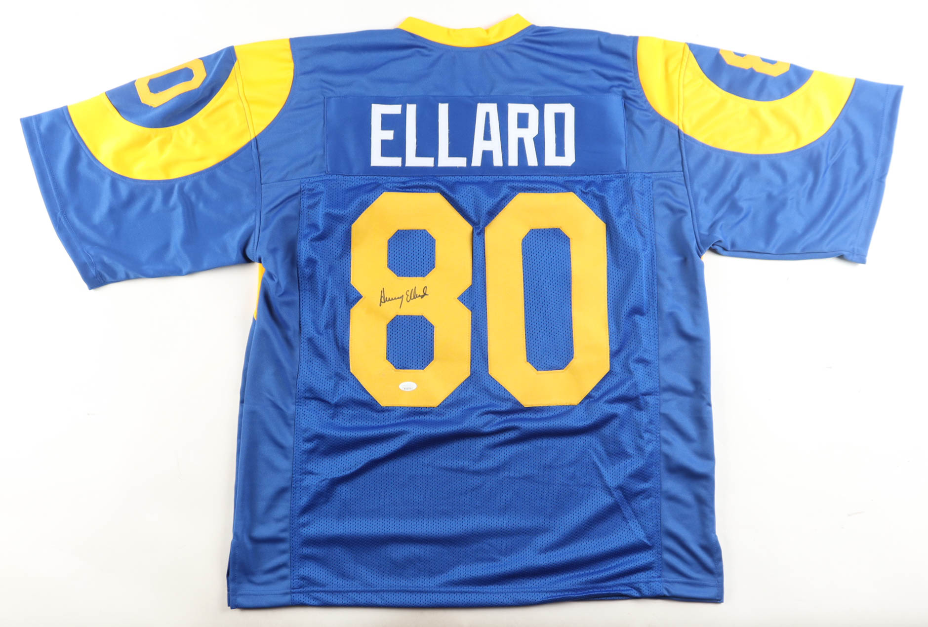 Custom jersey with everything sewn own, size XL. Hand-signed by Henry Ellard.