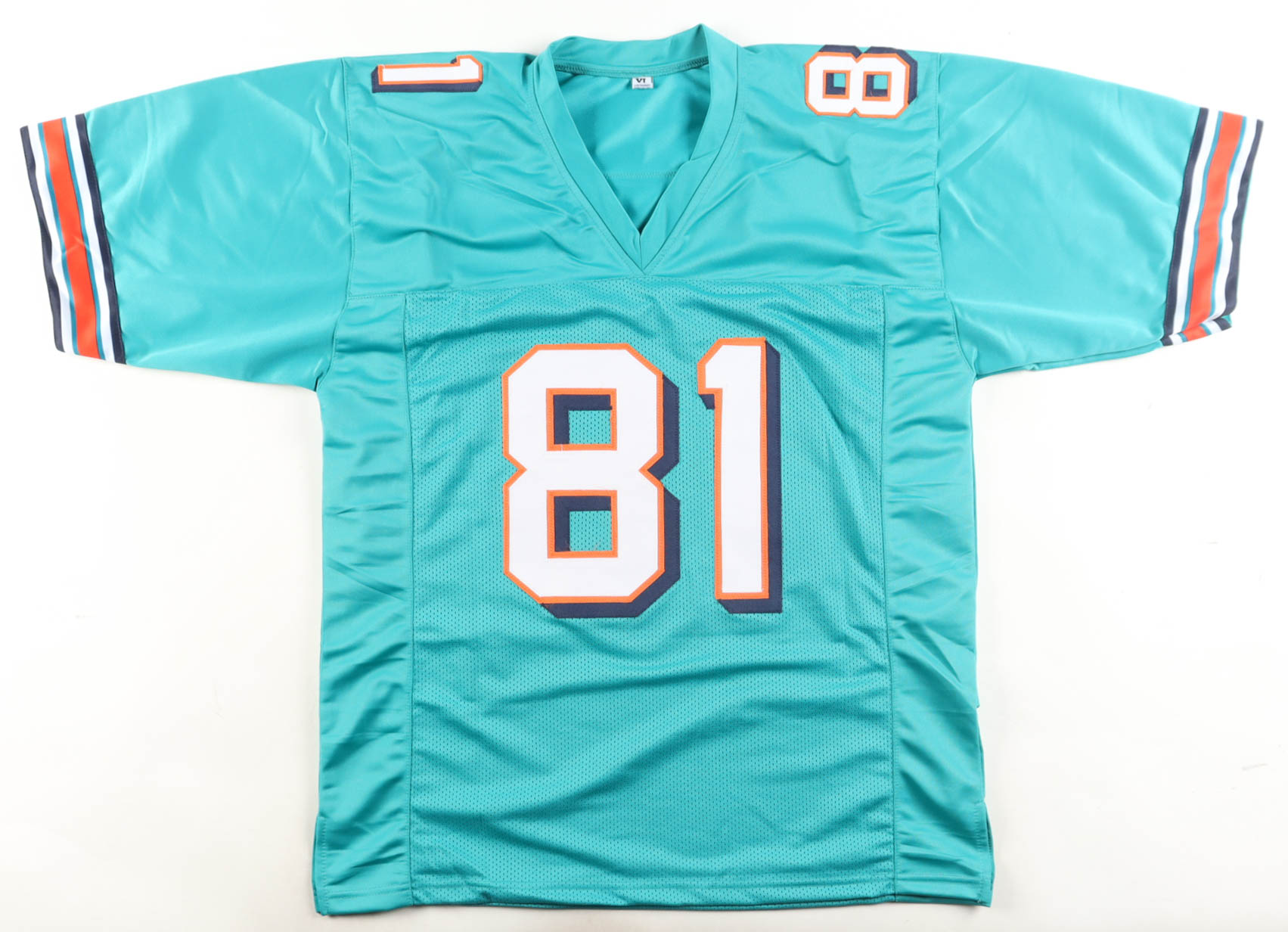 Custom jersey. Everything is sewn on, size XL. Hand-signed by O.J. McDuffie. Please note, the signature has bled.