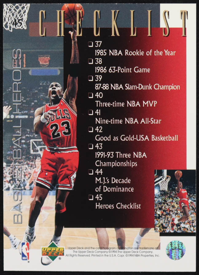 Michael Jordan 1994-95 Upper Deck Jordan Heroes #45