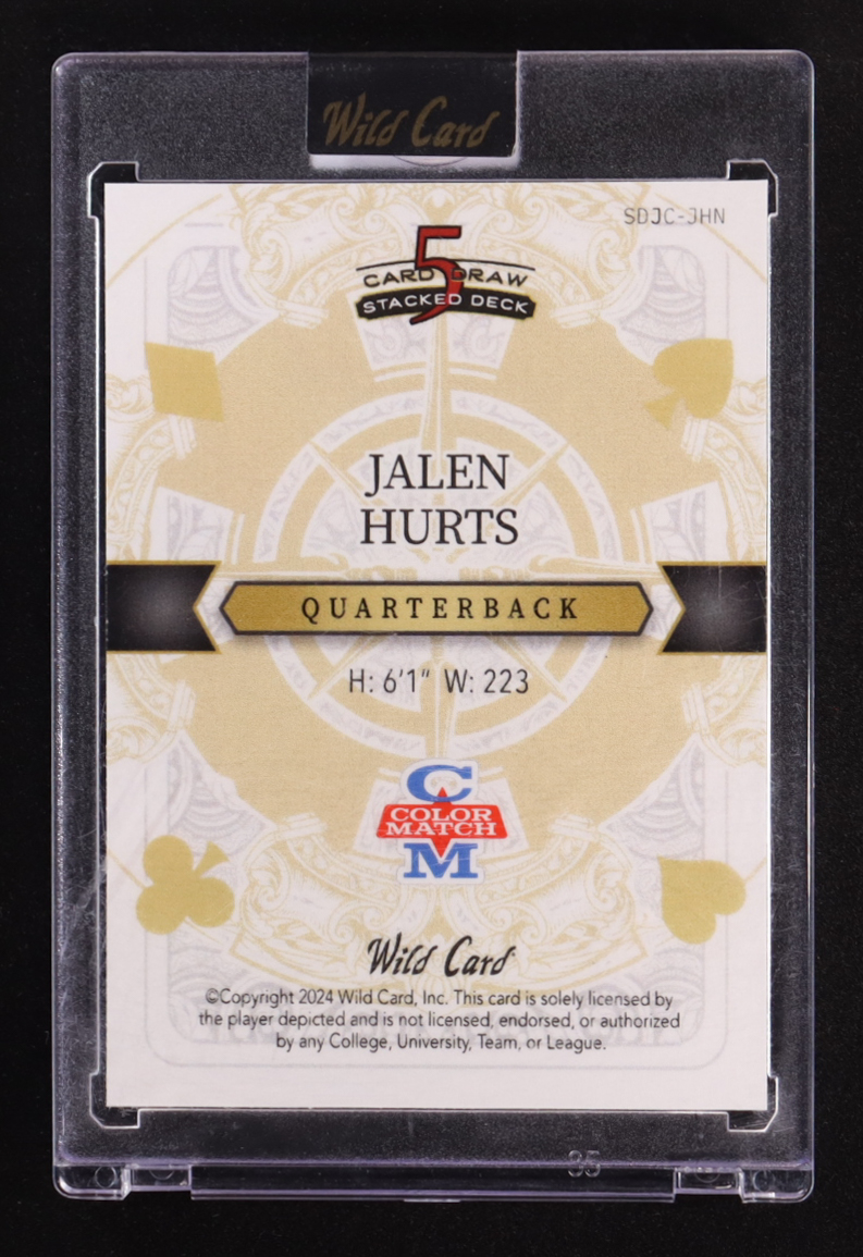Jalen Hurts 2024 Wild Card 5 Card Draw Stacked Deck King of Clubs Holo Silver and Green #JHN #1/1