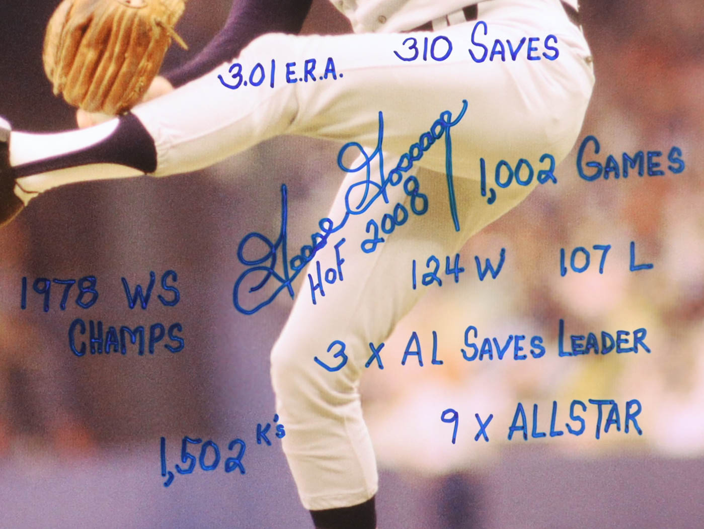 Photo measures 16" x 20" in size and has been hand-signed and inscribed by Goose Gossage (New York Yankees, HOF).
