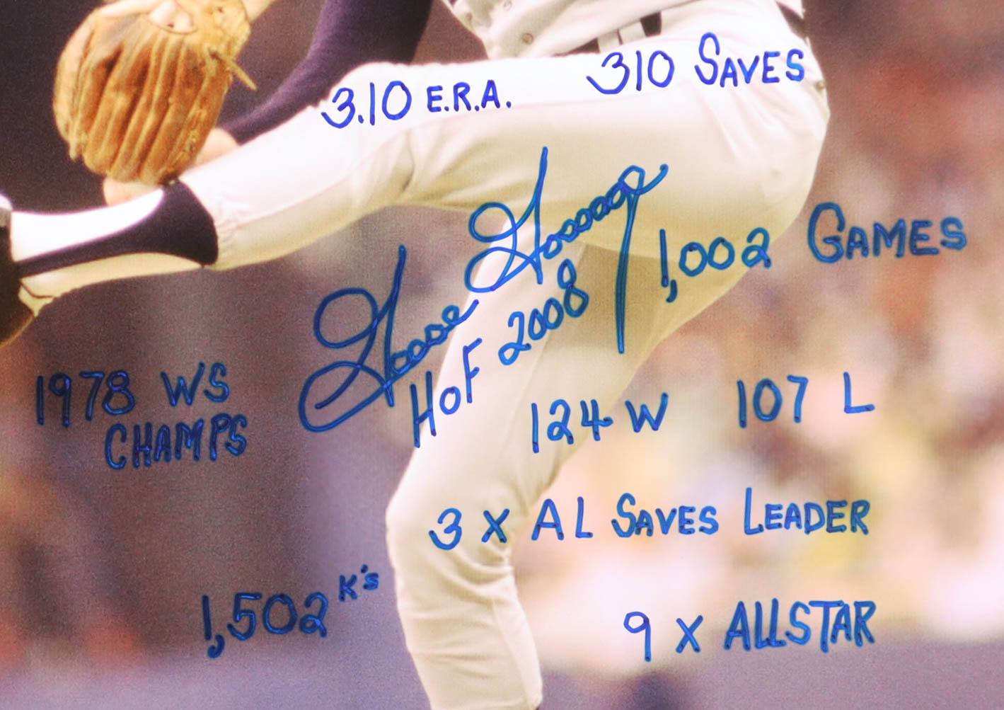 Photo measures 16" x 20" in size and has been hand-signed and inscribed by Goose Gossage (New York Yankees, HOF).