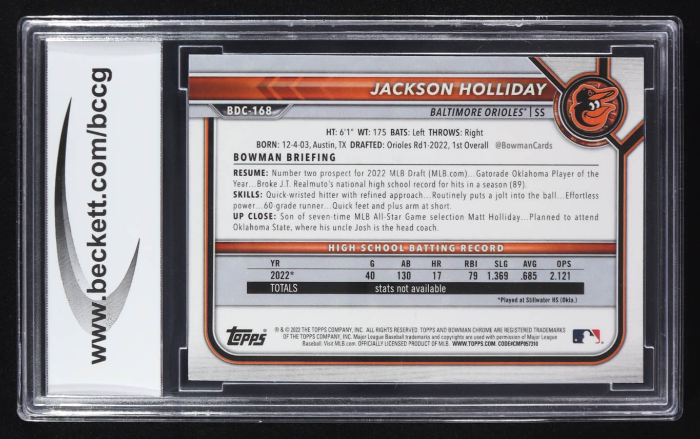 Jackson Holliday 2022 Bowman Chrome Draft #BDC168 RC (BCCG 9)