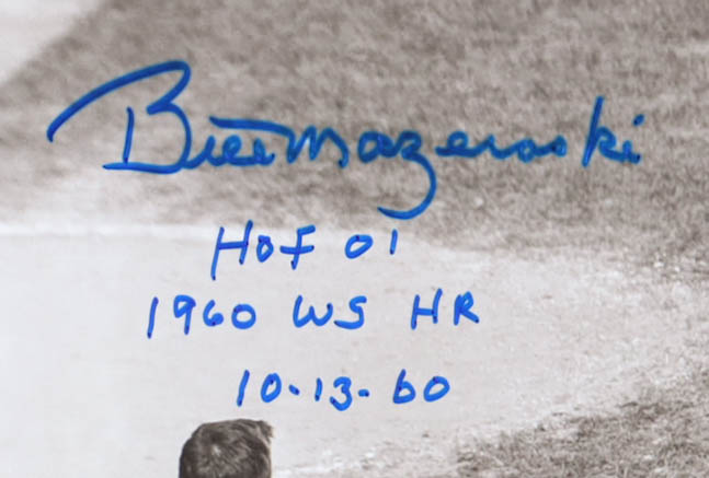 Photo measures 16" x 20" in size and has been hand-signed and inscribed by Bill Mazeroski (D. 2026, Pittsburgh Pirates, HOF).