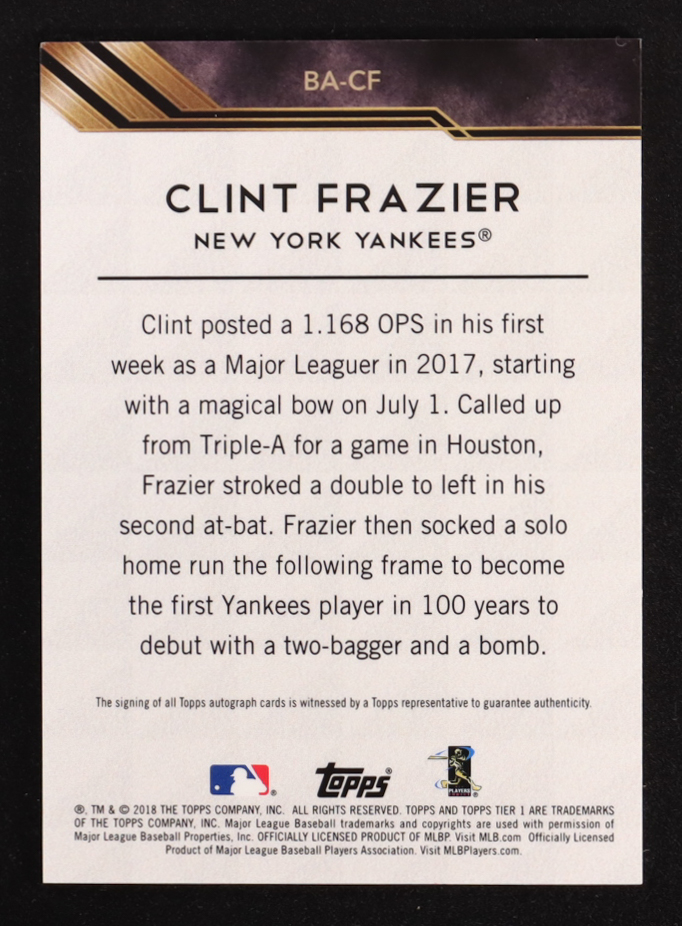 Clint Frazier 2018 Topps Tier One Break Out Autographs #BACF RC #090/225