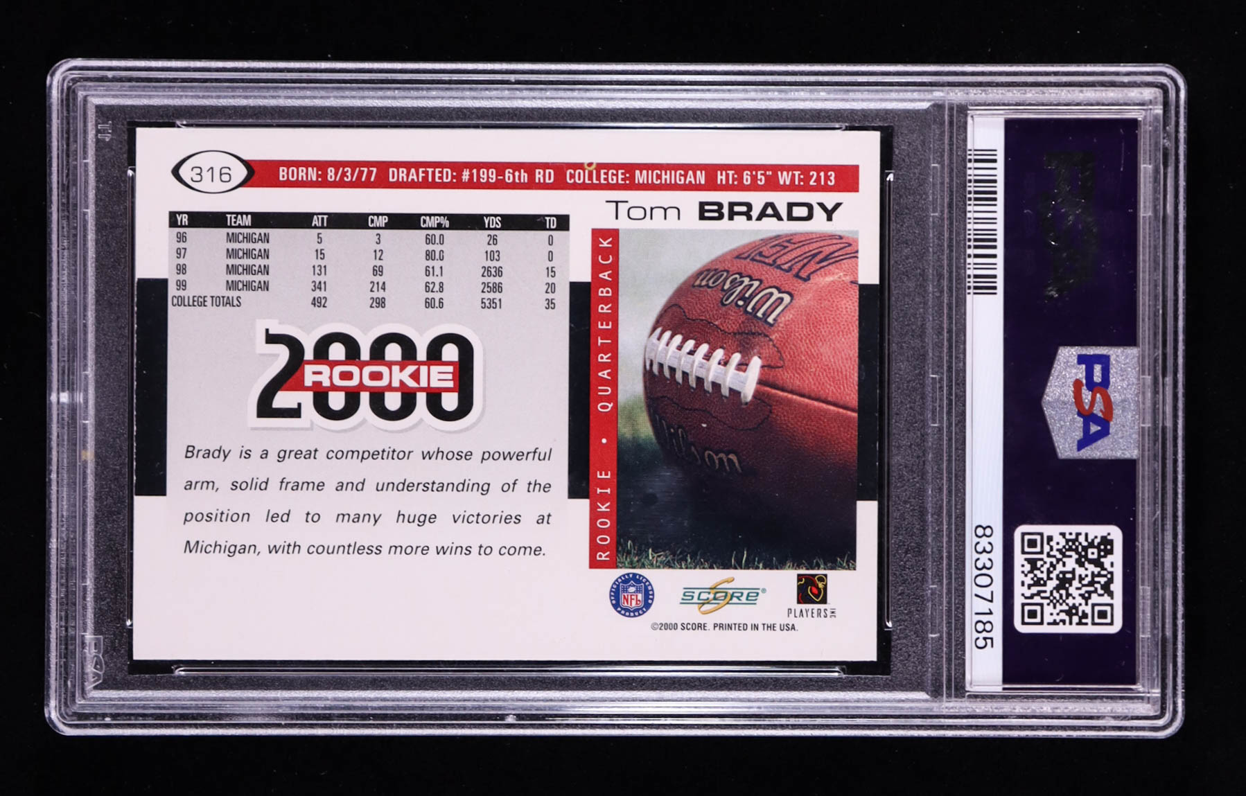 Tom Brady 2000 Score #316 RC (PSA 6)
