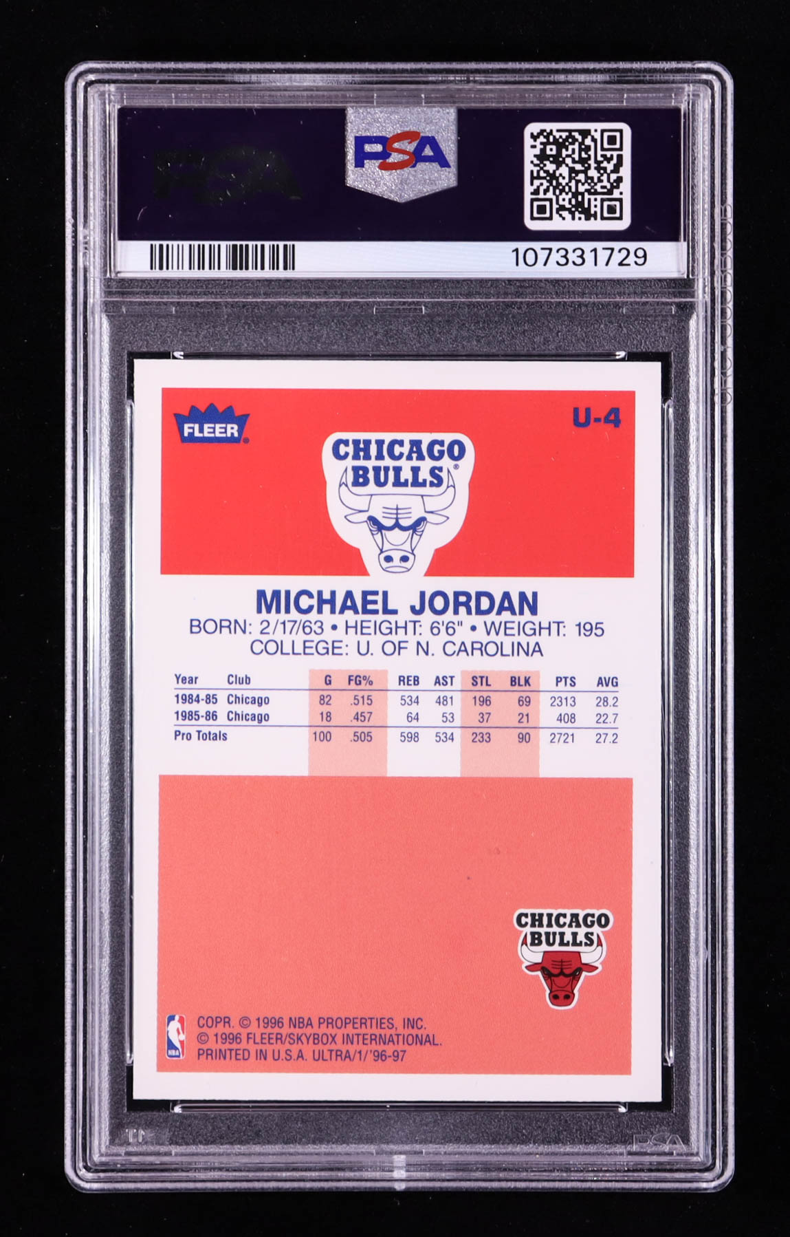Michael Jordan 1996-97 Ultra Decade of Excellence #U4 (PSA 9)