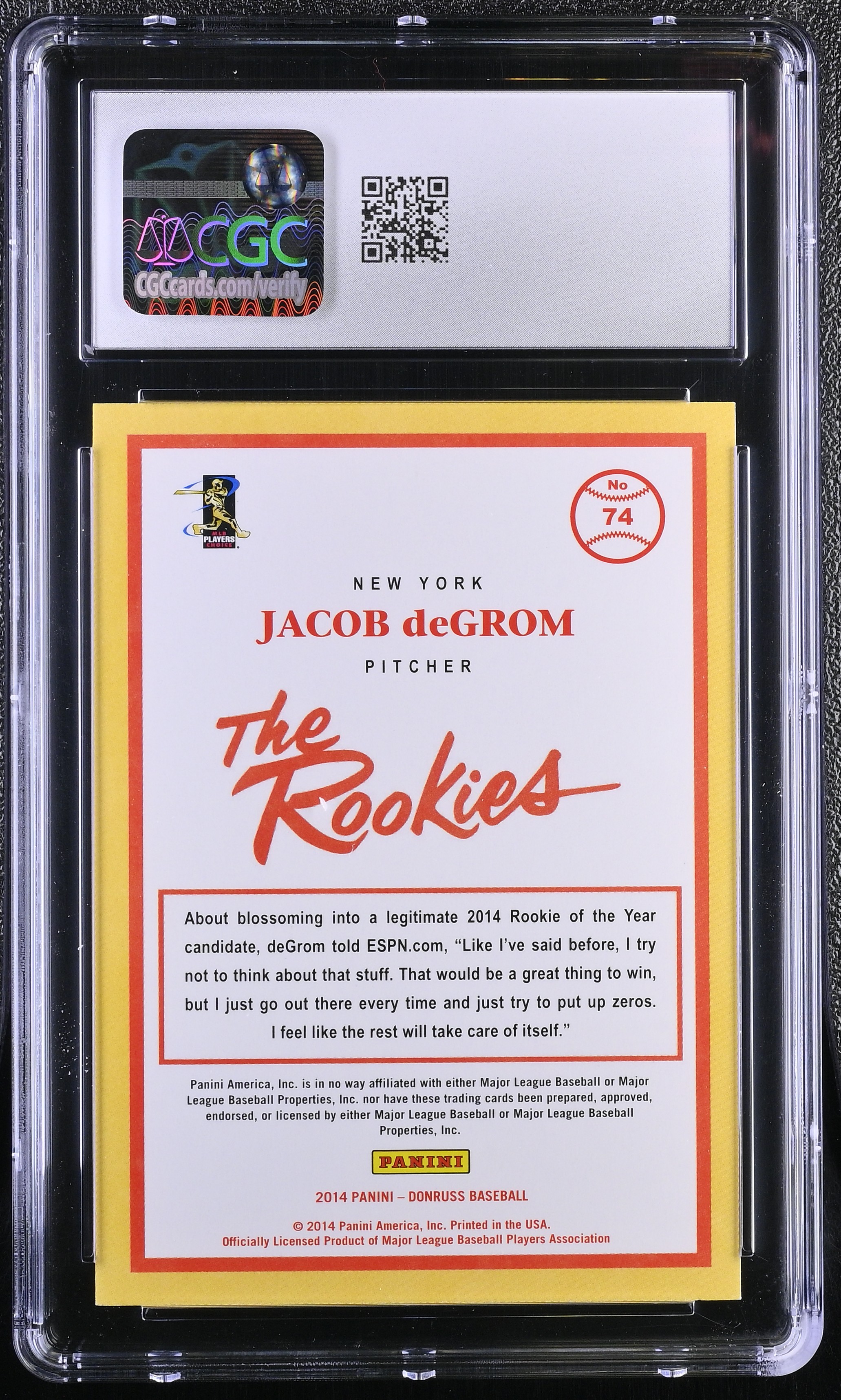 Jacob DeGrom 2014 Donruss The Rookies #74 RC (CGC 10)