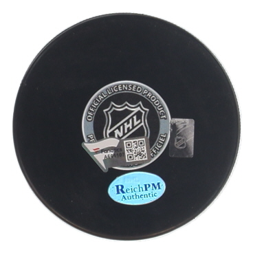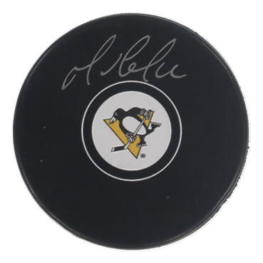 Pittsburgh Penguins logo hockey puck has been hand-signed by Mario Lemieux (Pittsburgh Penguins, HOF). Plastic display case is included.