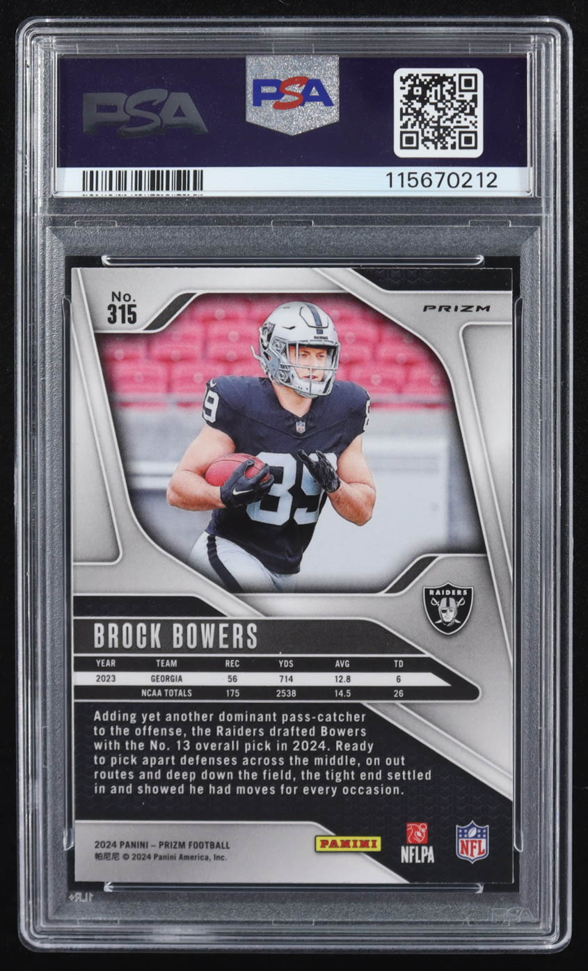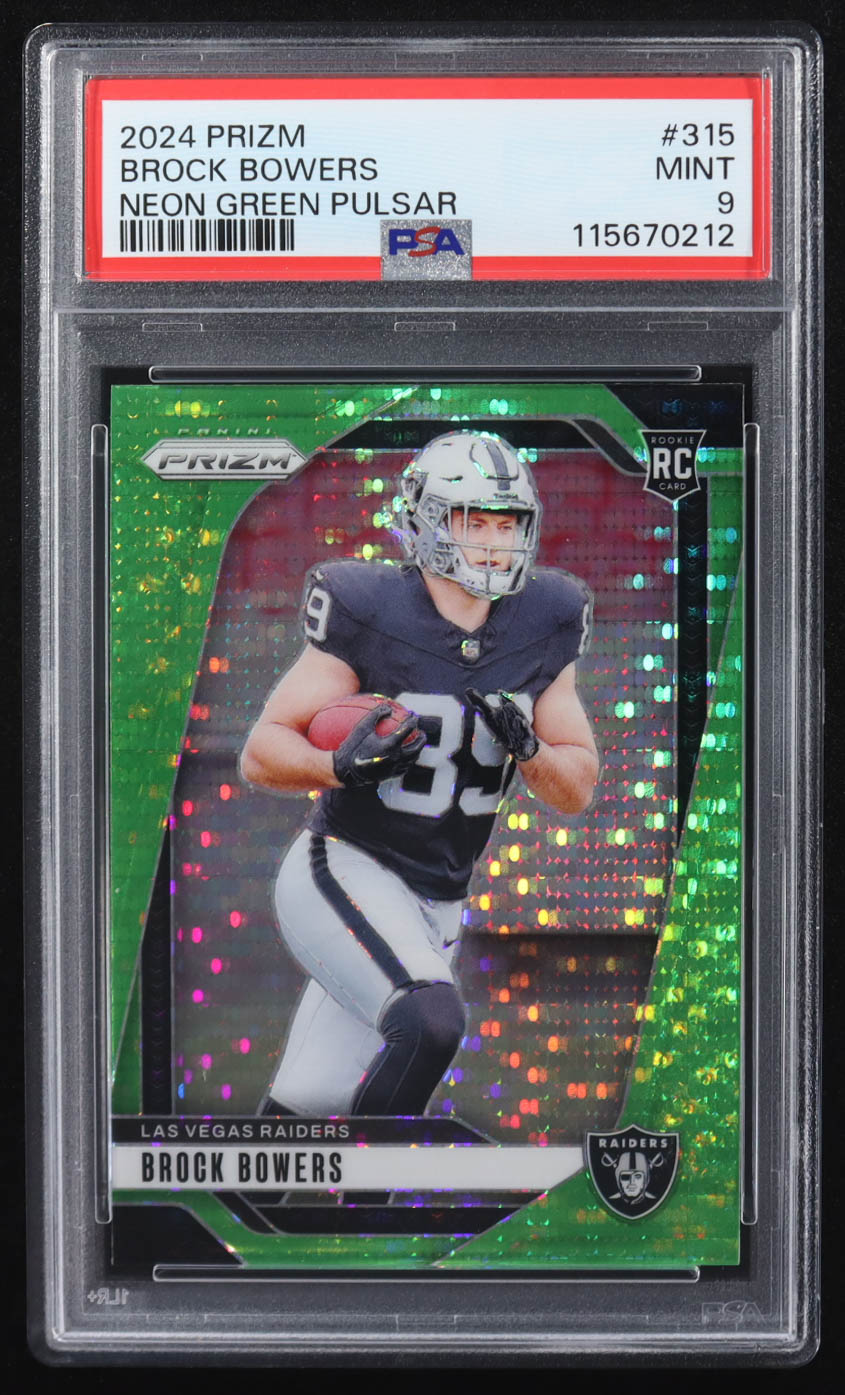 Brock Bowers 2024 Panini Prizm Neon Gren Pulsar RR #315 RC (PSA 9)