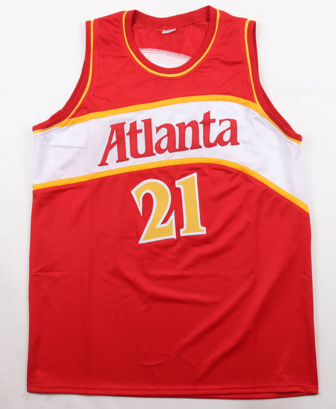 Custom jersey with everything sewn on, size XL. Hand-signed by Dominique Wilkins.