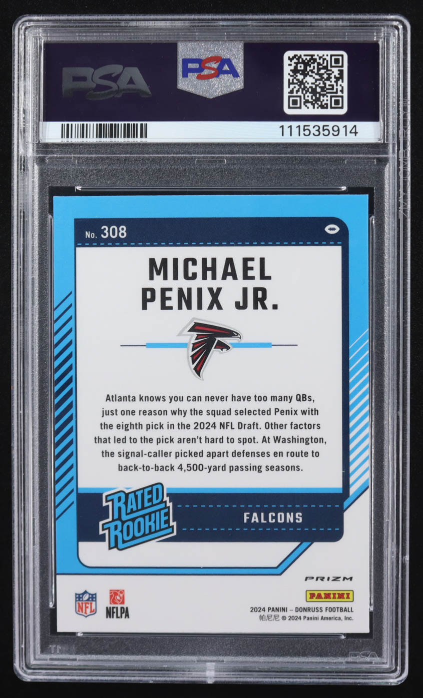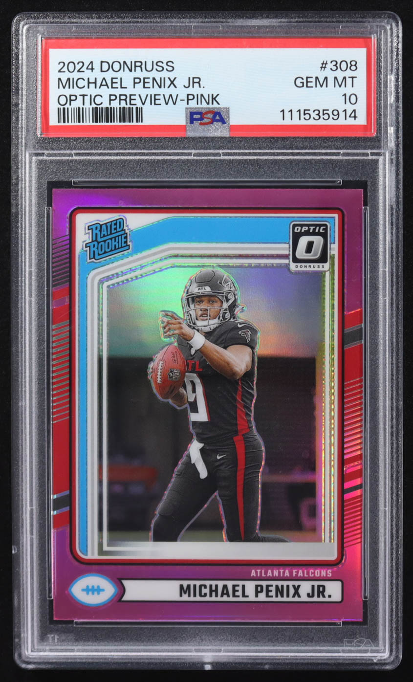 Michael Penix Jr. 2024 Panini Donruss Optic Preview Pink RR #308 RC (PSA 10)