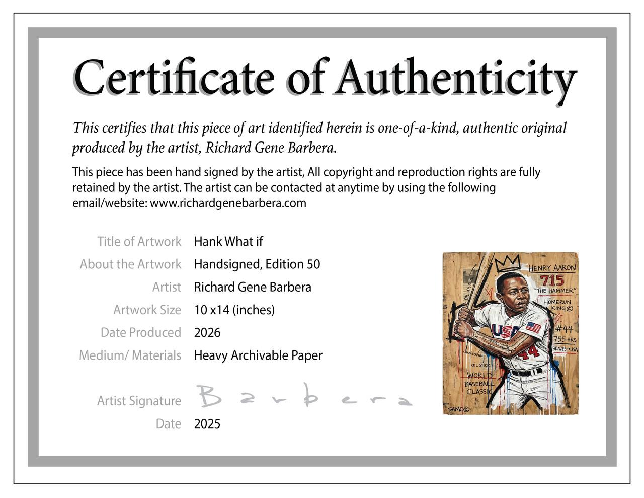 Richard Gene Barbera Signed LE "What if - "Aaron Team USA" 2026 10x12 Original Art Print (Barbera)