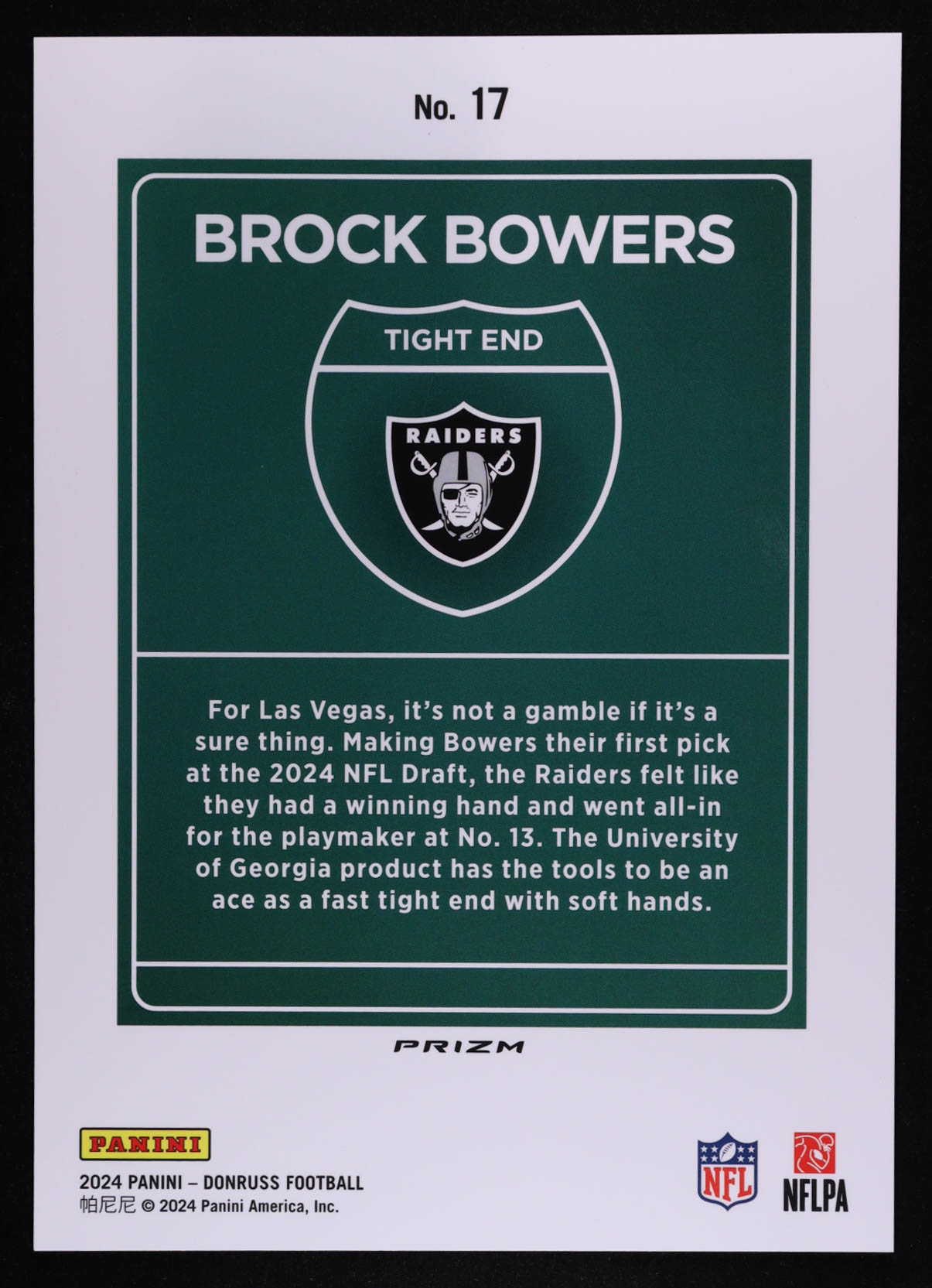 Please see photos for more details regarding the condition of the card (Las Vegas Raiders).