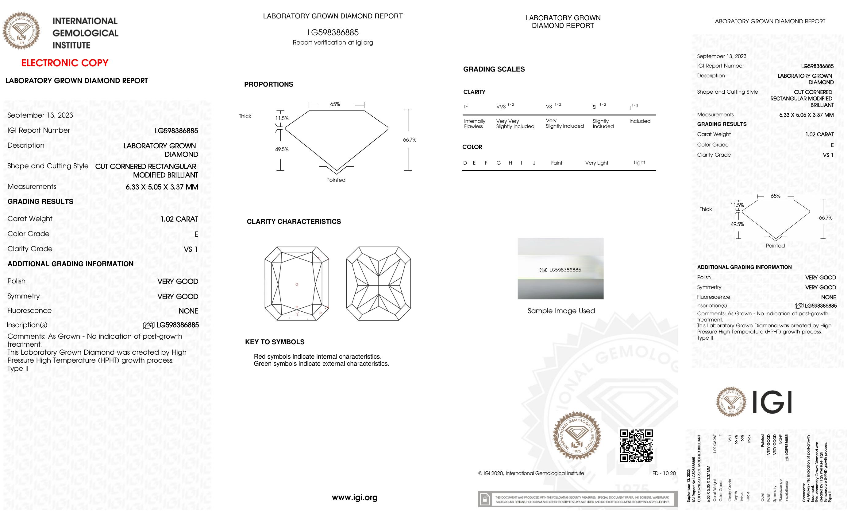 This piece includes paperwork from the International Gemological Institute (IGI).