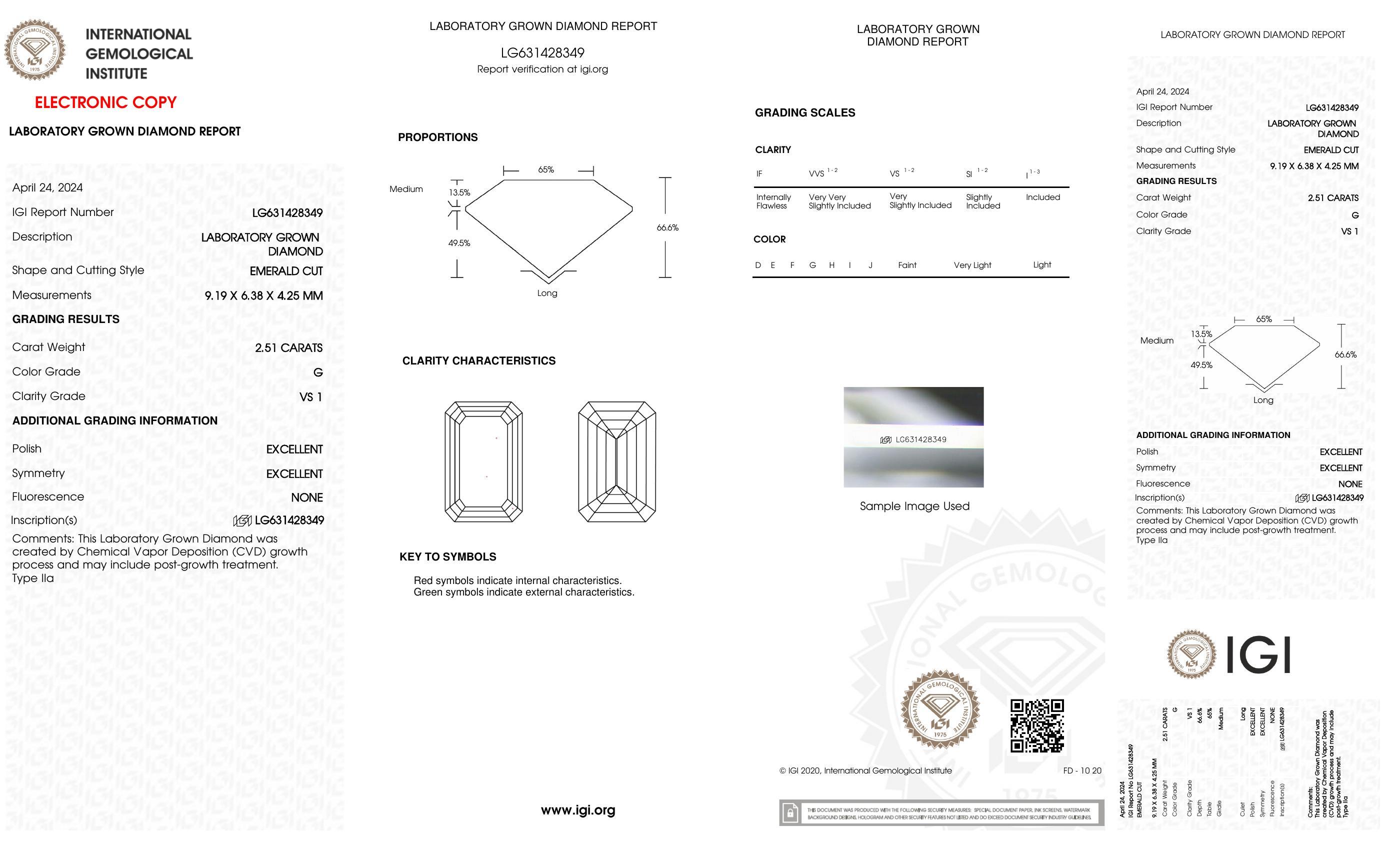 2.51 Carats Lab Grown Diamond Loose G, VS1 | $3,700 Estimated Retail Value (UGL & IGI Certs) | Emerald Cut