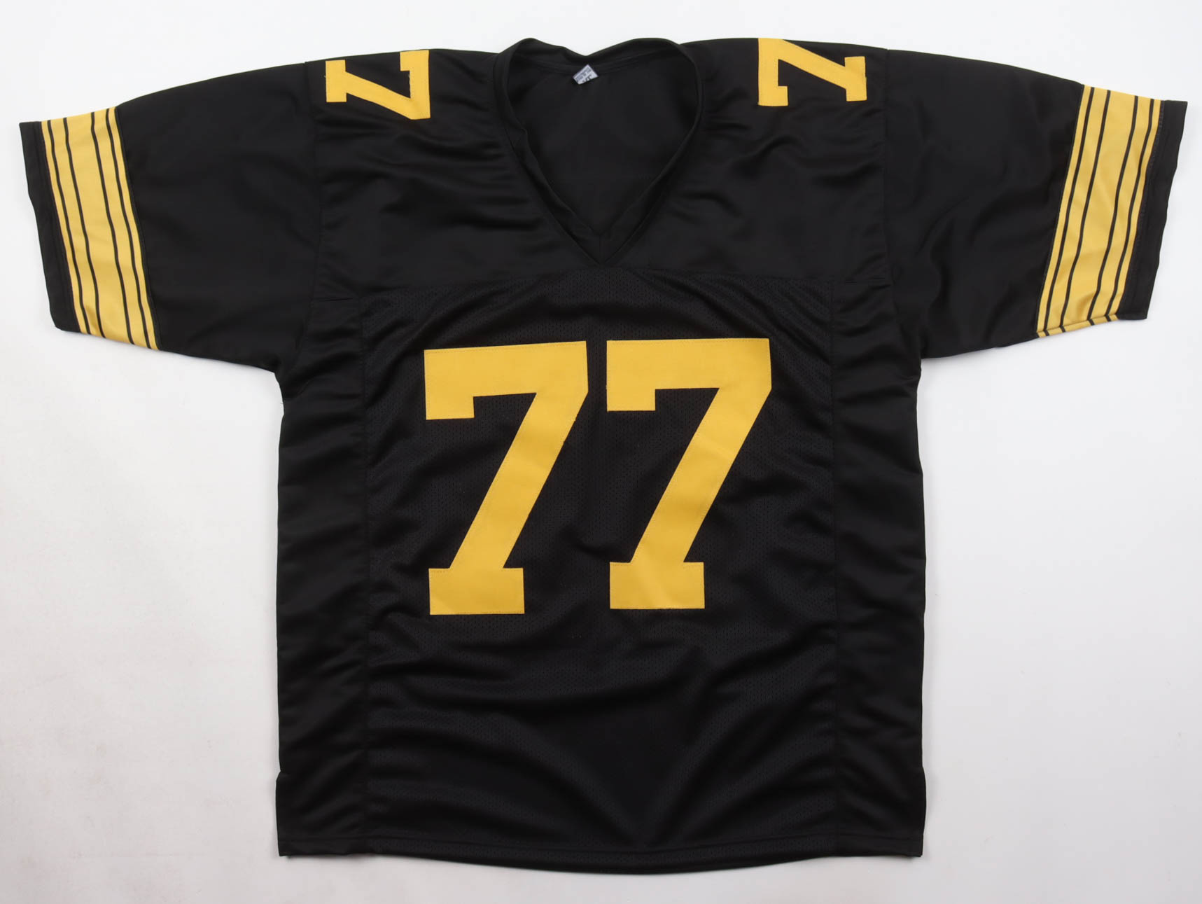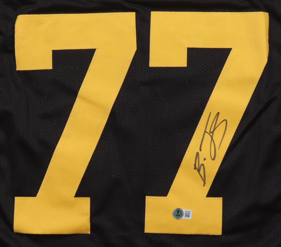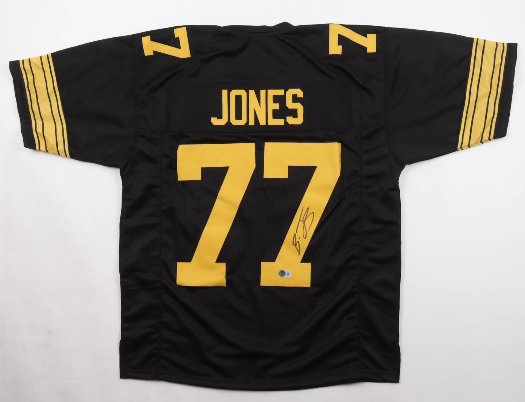 Custom jersey with everything sewn on, size XL. Hand-signed by Broderick Jones.
