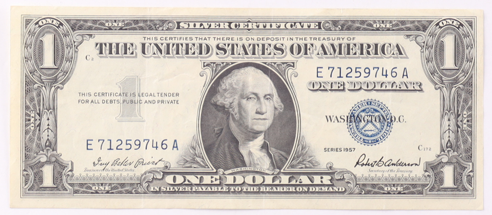 1957 $1 United States Treasury Blue Seal Silver Certificate Paper Bank Note